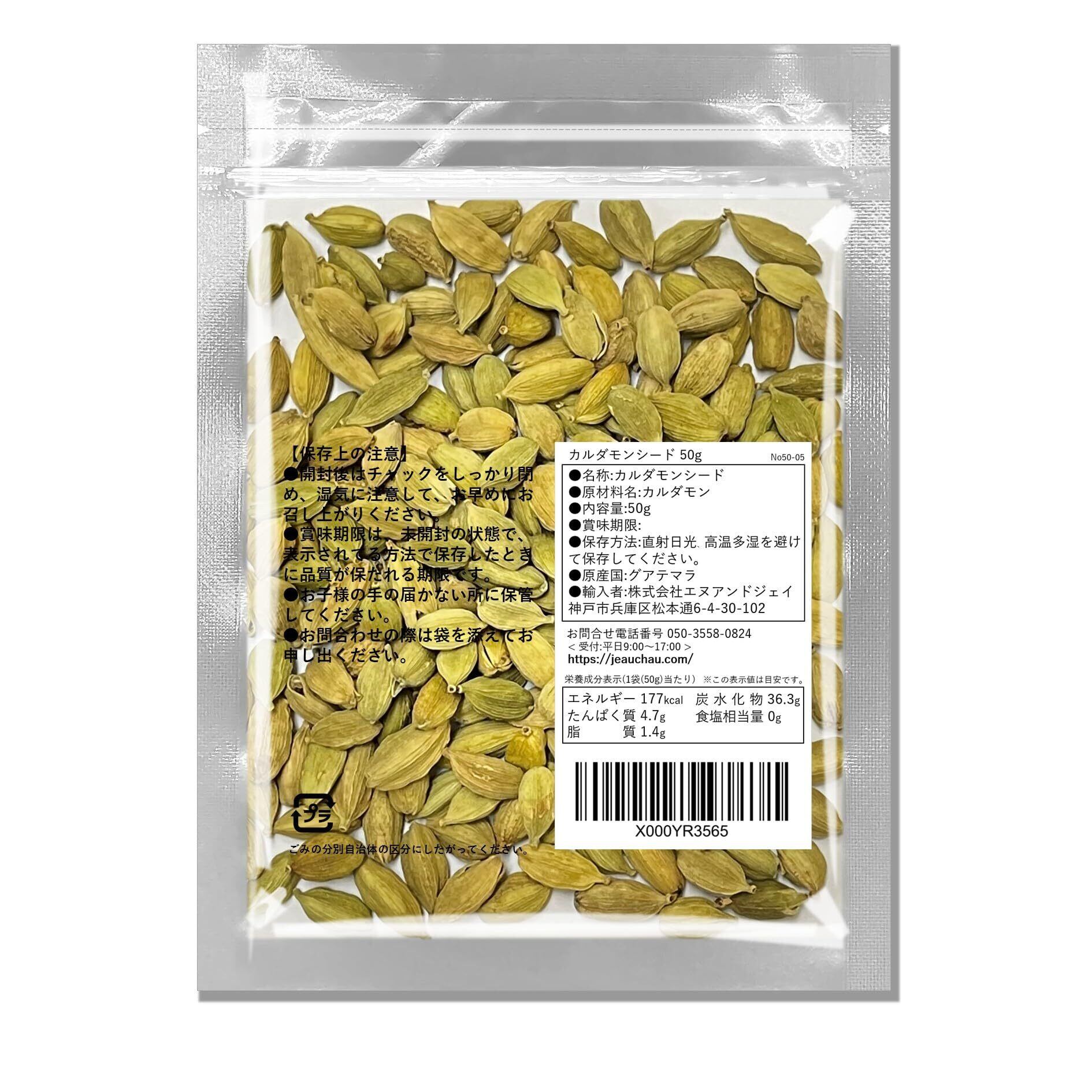 JEAU CHAU カルダモンシード 50g (グアテマラ産 カルダモン) 選別品 原形 グリーンカルダモン ホール cardamom (スパイス 香辛料) 無添加