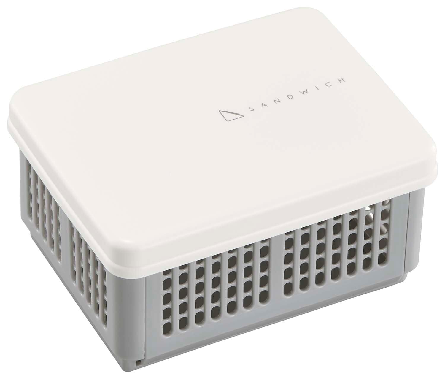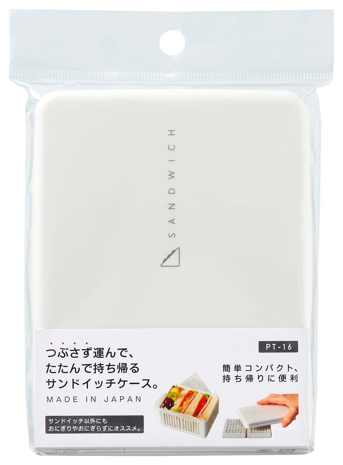 ●つぶさず運んで、たたんで持ち帰るサンドイッチケース。●トウモロコシ由来のバイオマス原料を約10%使用しており、CO2排出量の削減に貢献。環境にやさしい商品です。●抗菌(抗菌加工部分:フタ・本体/抗菌剤の種類:銀等無機抗菌剤)●フタ・本体に、バイオマス原料を使用しています。 サイズ:138×106×H73mm 素材:フタ・本体/ポリプロピレン 生産国:日本