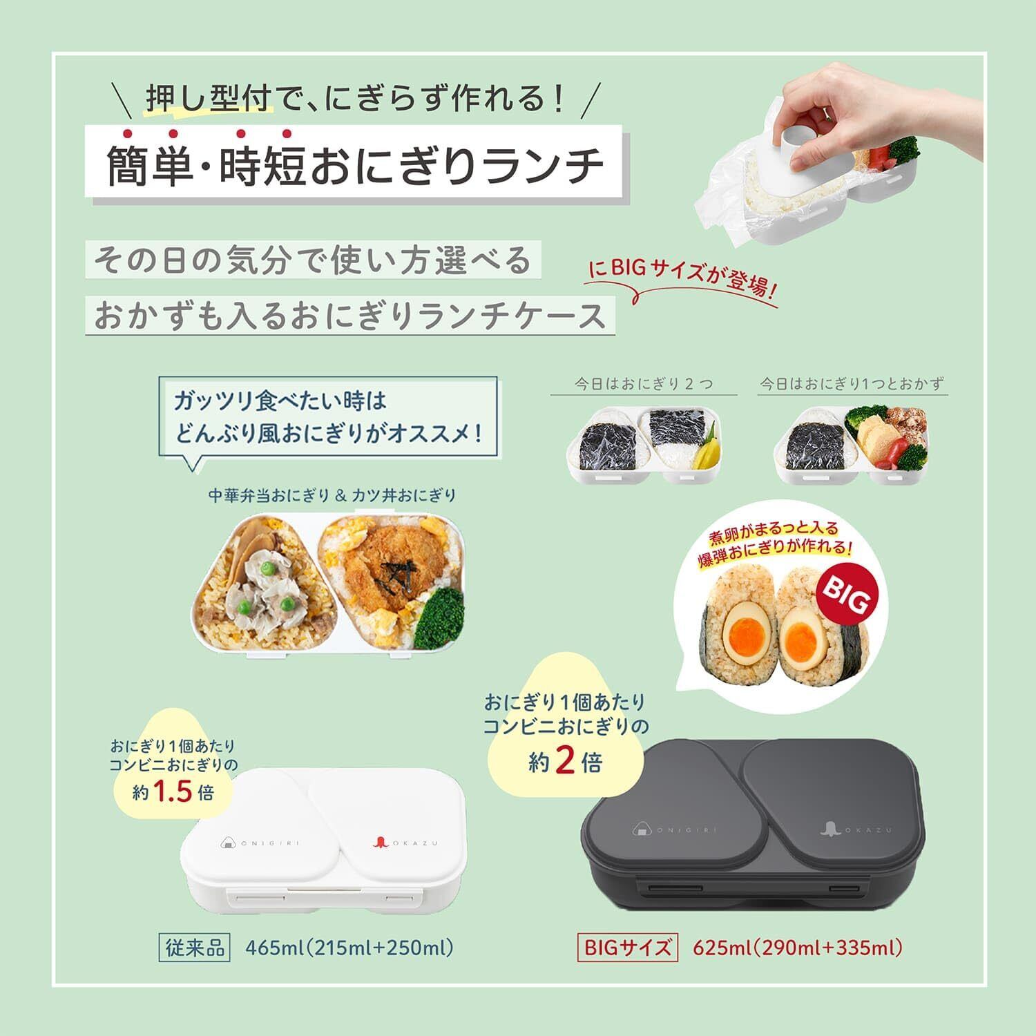 にぎらず作れて、おかずも入るおにぎりケース。簡単・時短おにぎりランチ作れるおにぎり1個あたり、コンビニおにぎりの約2倍!