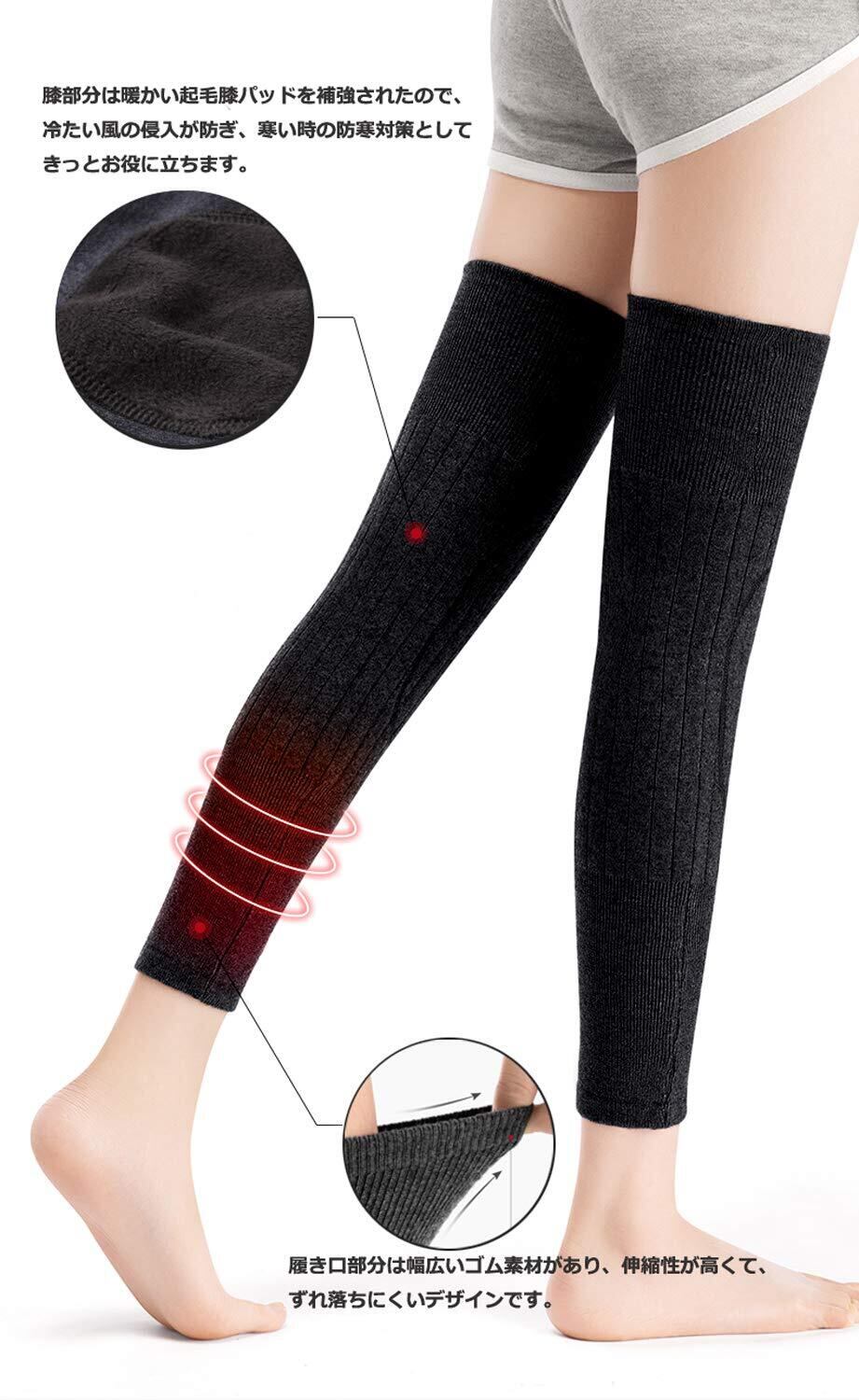 メイン素材:ウール、ゴム、綿 サイズ:長さ 約44cm 幅 約16cm 対応できる膝周り 35cm~52cm(伸縮性が良い、体重70KG以下の方にオススメします。) 入れ数:2枚(1ペア)