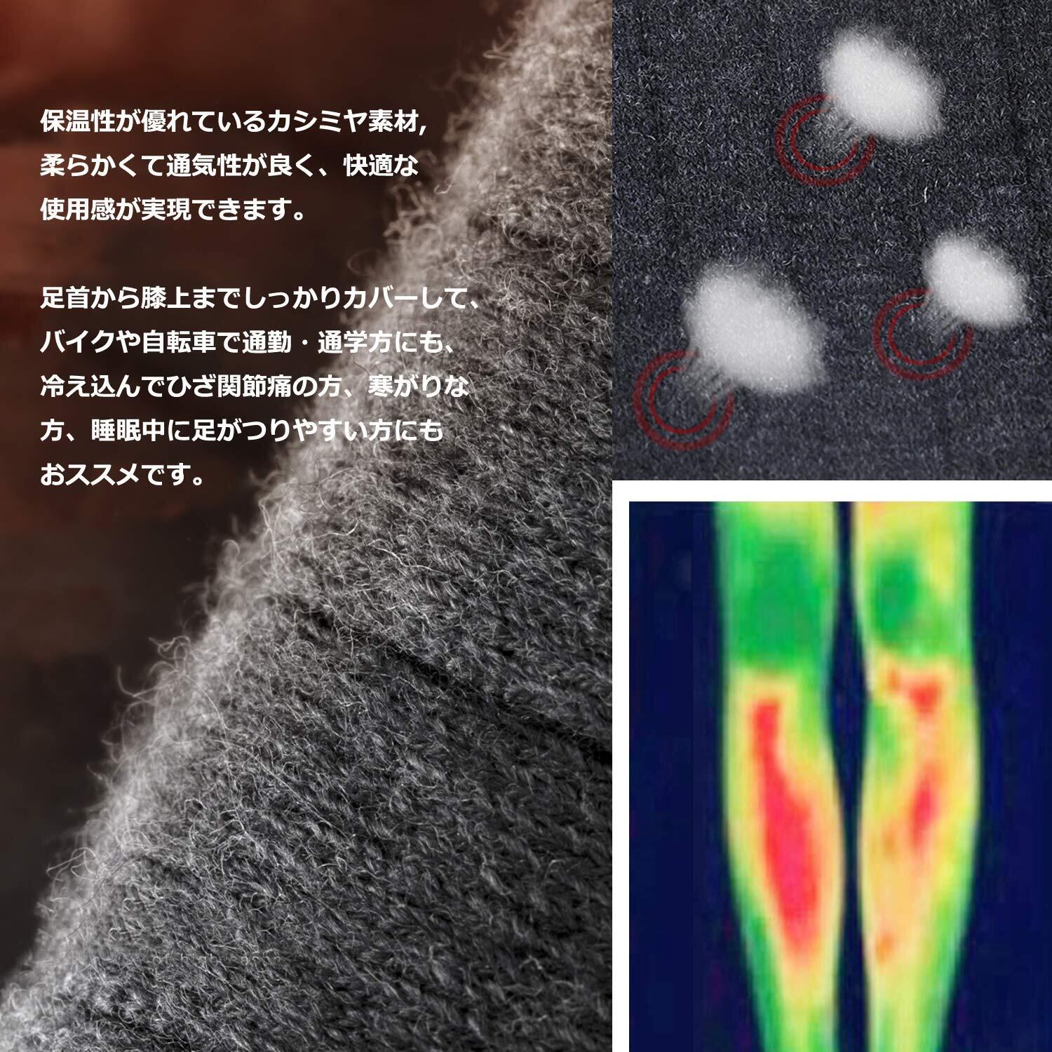 足首から膝上までしっかりカバーしてくれるレッグウォーマーです。バイクや自転車で通勤・通学方にも、寒がりな方、睡眠中に足がつりやすい方にもおススメです。