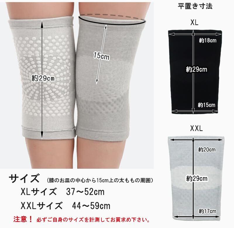 サイズ:XL(LL)/長さ約28cm、膝上10cm回り 37-52cm、XXL(3L)/長さ約28cm、膝上10cm回り 44-59cm