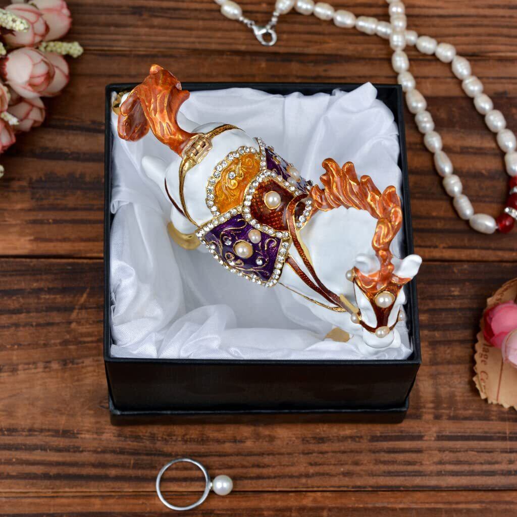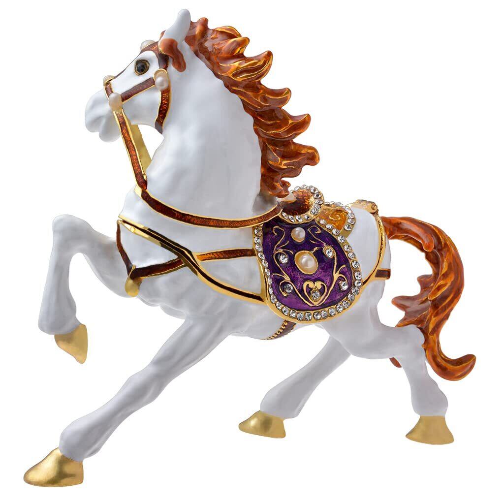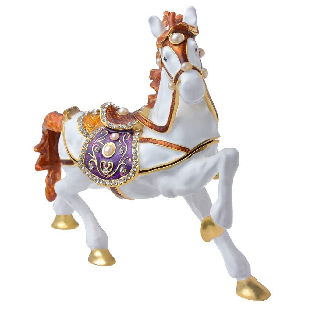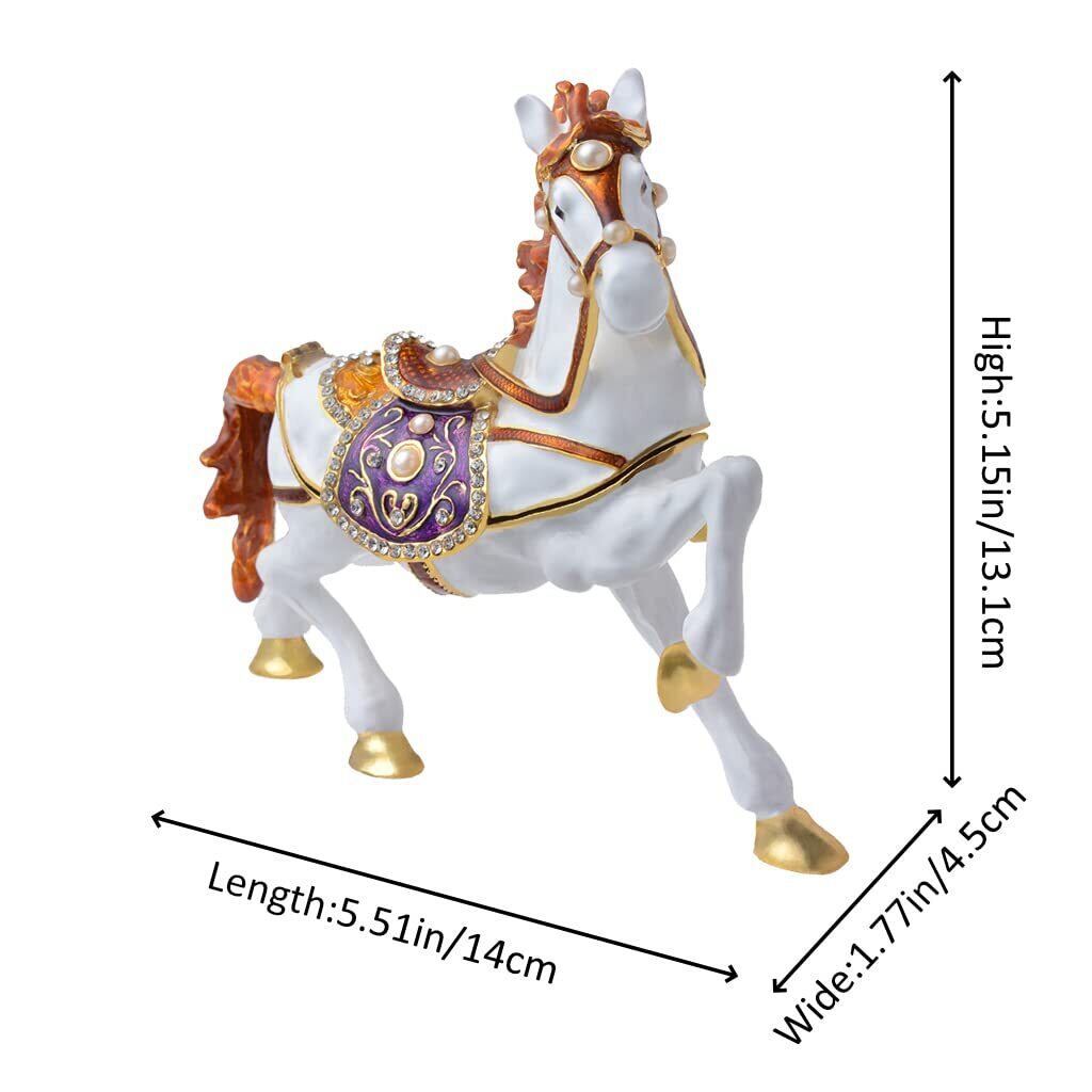 White Horseの置物 5.51インチ 小物入れ ジュエリーボックス ヒンジ付き ゴールデンクリスタル エナメル加工 動物 ホームデコレーション 特別な日のギフト