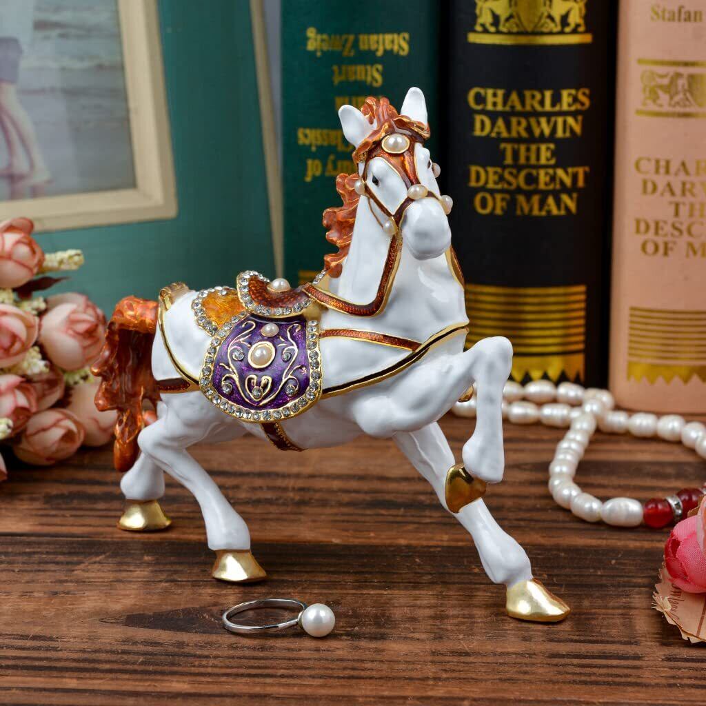 白い馬の置物はヒンジデザインで、指輪、ブレスレット、ジュエリーなどの小物を収納するための内部スペースを提供します。