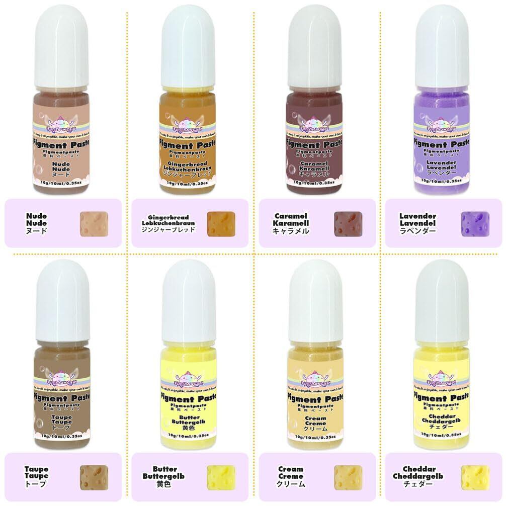 好きなモチーフでむにゅむにゅスクイーズを自作できるスクイーズレジン専用のカラーペーストです。バター、ジンジャーブレッド、ラベンダー、クリーム、チェダー、キャラメル、ヌード、トープの柔らかいクリーム色が含まれています。メロンパン、サンドイッチ、たい焼き、蒸しパン、餃子、トースト、チーズ、スフレ、タピオカなどの手作りデザートスクイーズに適用します。