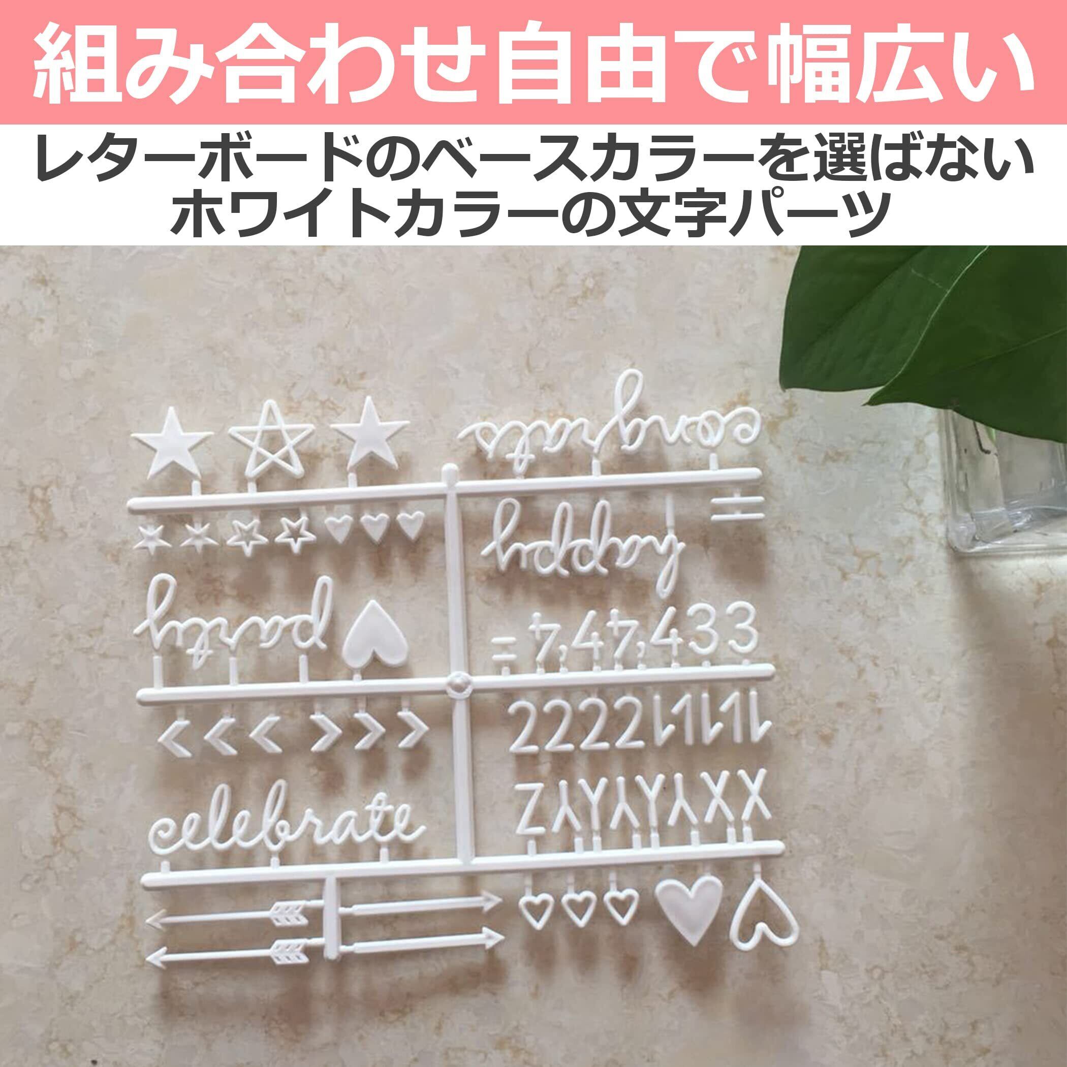 使い勝手の良い文字パーツ::レターボードに配置して、自由にメッセージなどを表現できる文字パーツ4種セットです。レターボードのベースカラーを選ばないホワイトカラーの文字パーツです。