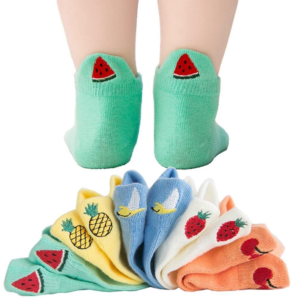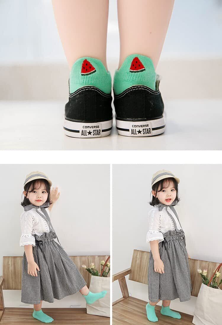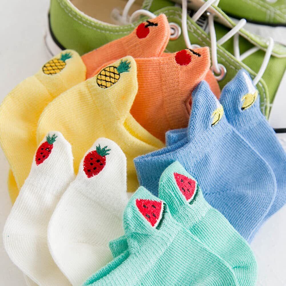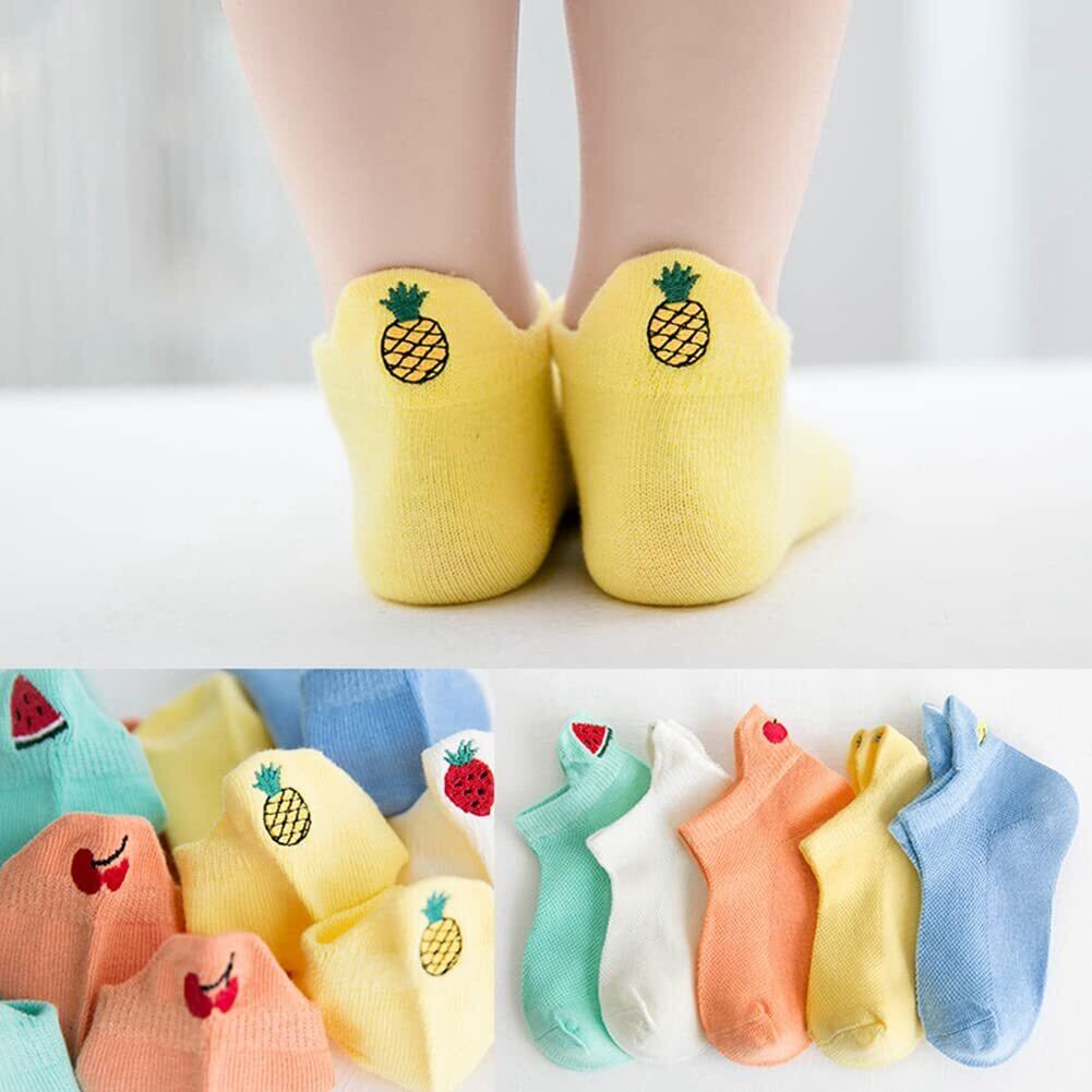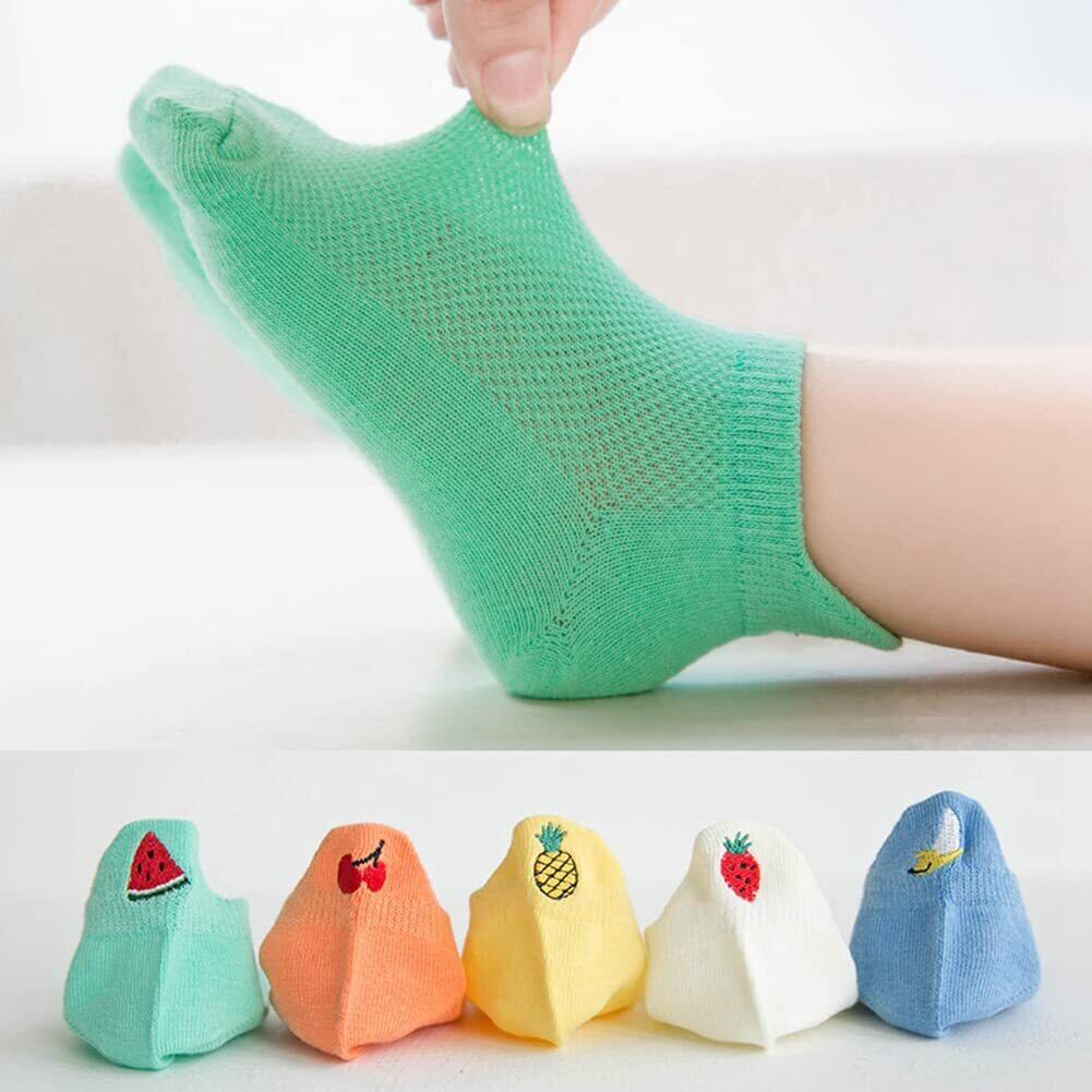 [InSomila] [インソミラ] 可愛い キッズ 子供 靴下 女の子 男の子 5足セット ソックス 果物 刺繡 くるぶし ジュニア 小学生 中学生 通気 メッシュ くつした コットン