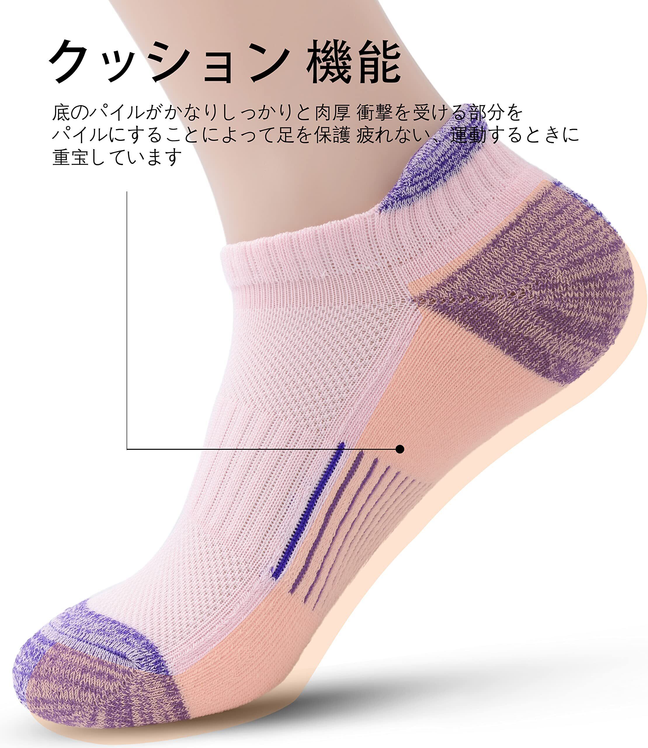 [banerise] スポーツソックス レディース 登山 テニス ランニングソックス 底パイル アーチサポート 靴下 ジュニア クォーターソックス 5足 セット