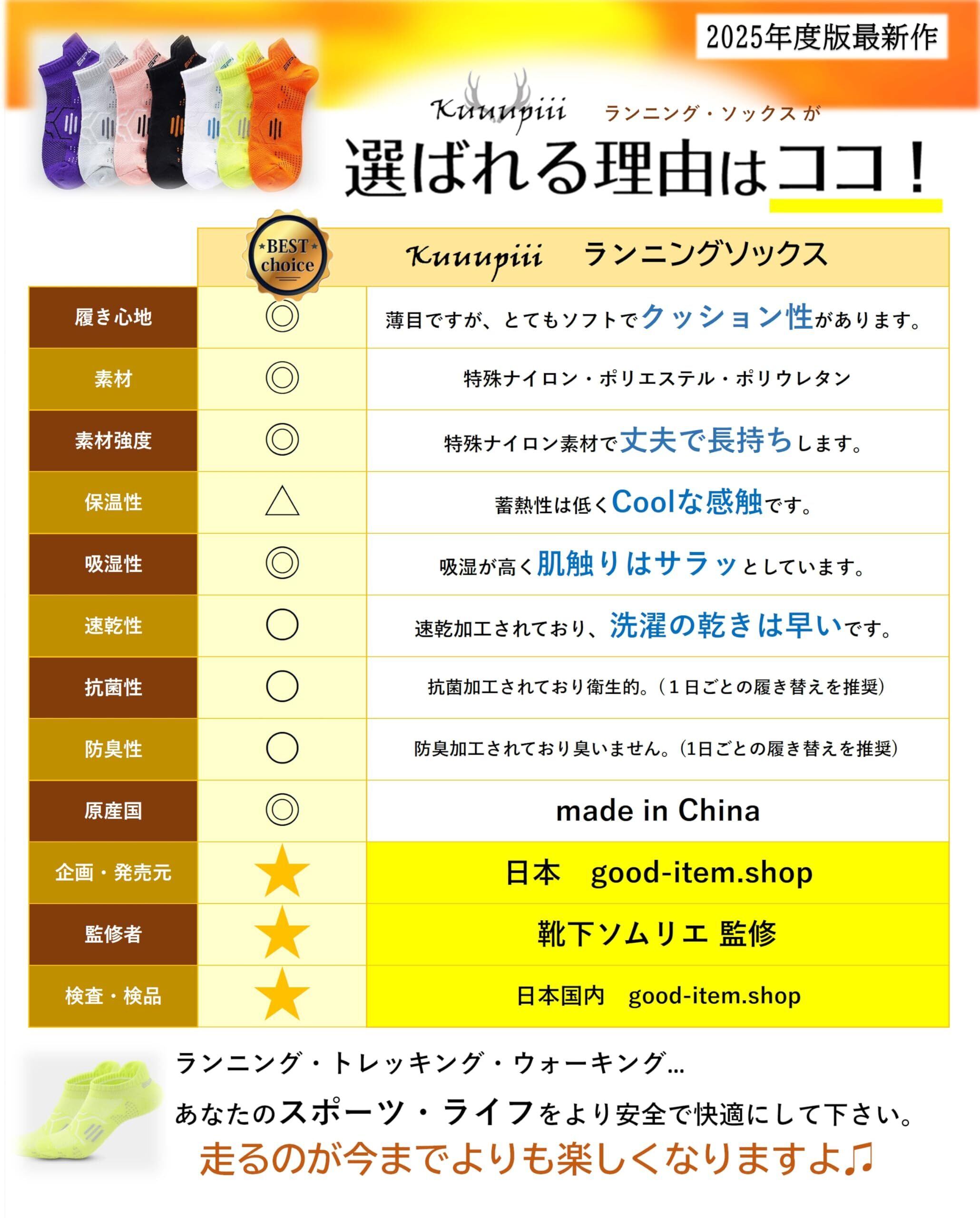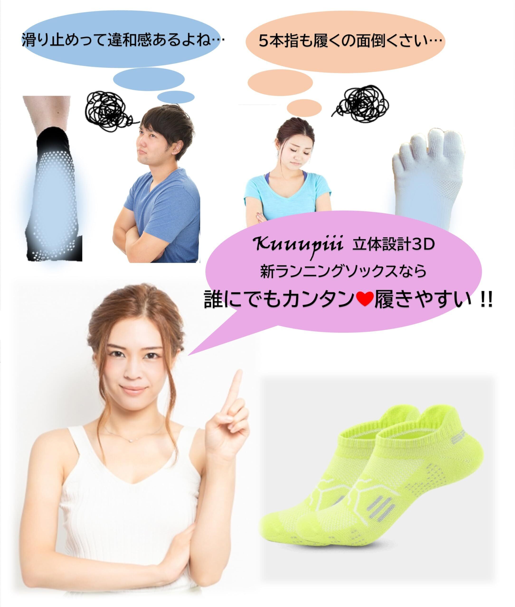 【Kuuupiii スポーツソックスの着用シーン】 ランニング、ウォーキングなどの競技だけでなくフィットネス、マウンテンバイク、ハイキング(夏場)、トレイルランニングなど すべての「運動」に適したスポーツソックスで、きっと多くのプレイヤーにとって有益なアイテムとなり得ます。 また、とても履き心地の良いソックスですから、スポーツの時だけでなくカラフルな色合いを普段のオシャレ時にも楽しむことができます。 ぜひ、あなたのお気に入りをお選び願います。