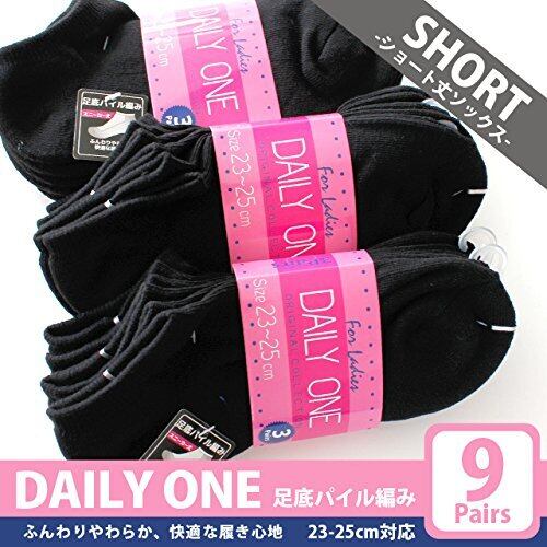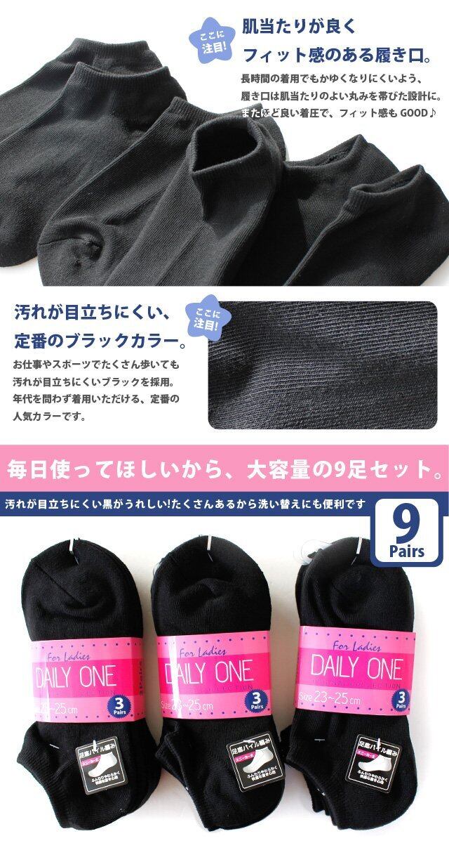 [box408] 靴下 レディース 足底パイル編み くるぶし丈 ソックス 9足セット ブラックカラー 23-25cm対応サイズ
