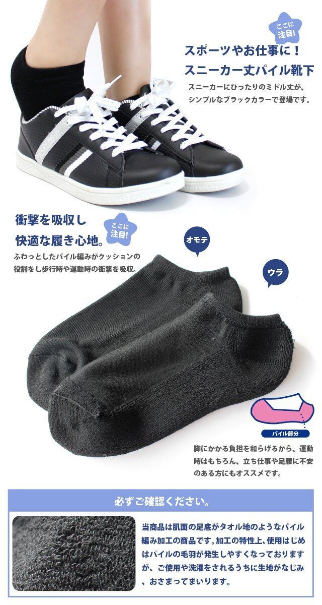 ◆タイプ:足底パイル編みソックス ◆セット数:9足セット ◆サイズ:23~25cm ◆置き寸サイズ:カカト~履き口/約4cm ◆カラー・柄:無地黒(画像と同じ) ◆素材:ポリエステル・綿・その他 ◆生産:中国製(企画・デザインは日本) ※ニット生地のため商品によりサイズに若干の個体差がございます。 ※ご利用のモニターにより、掲載写真との色の見え方が異なる場合がございます。
