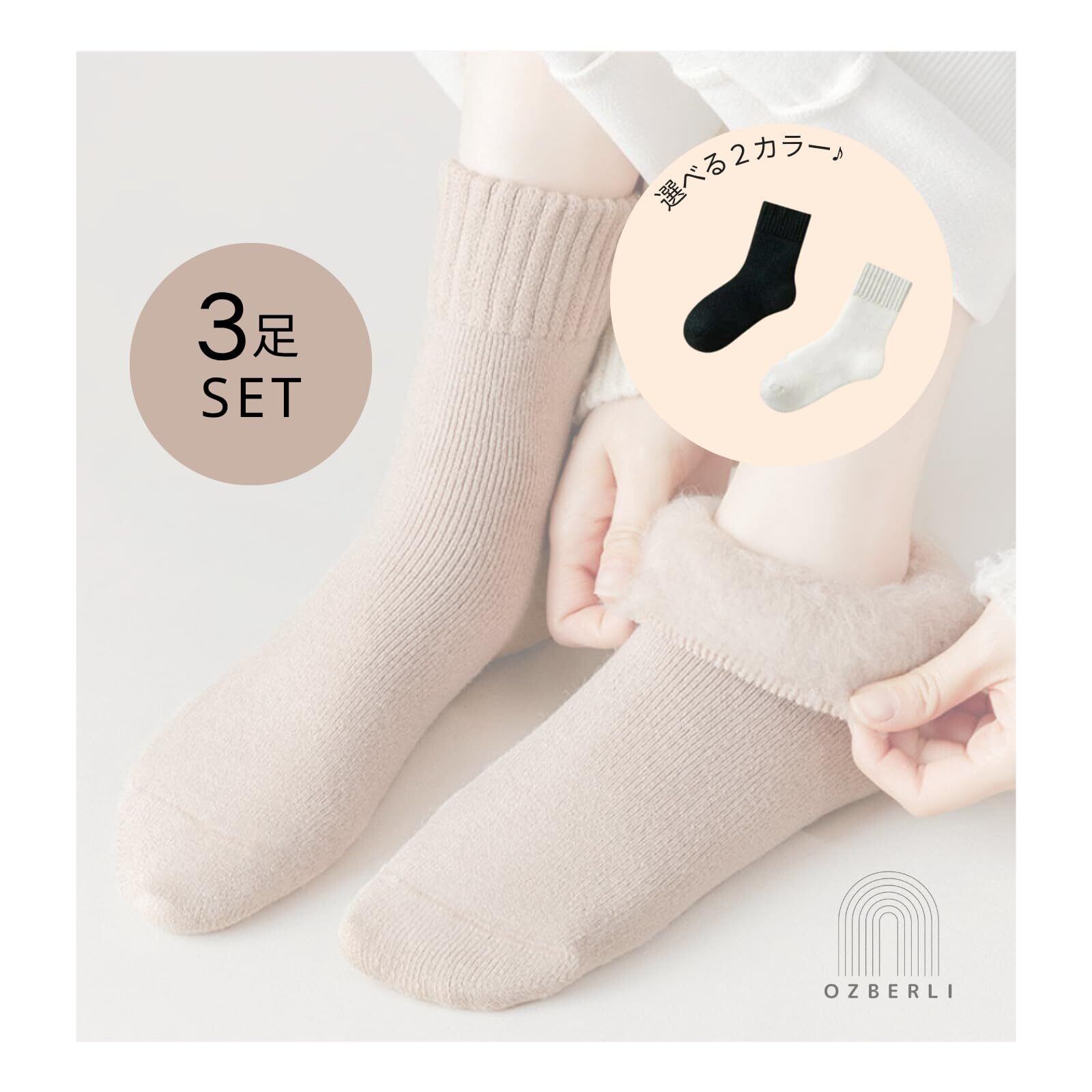 [OZBERLI] 3足 セット レディース あったか クルー ソックス 靴下 厚手 防寒 吸湿 発熱 通気 防臭 裏起毛 ボア 保温 暖かい くつした