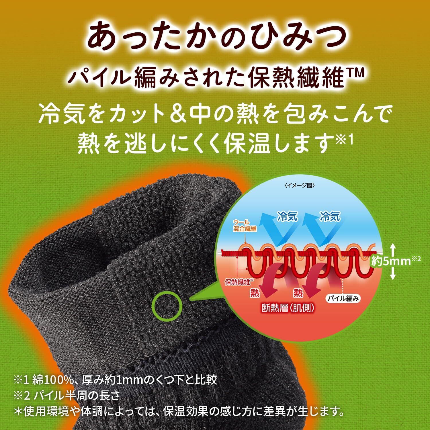 『断熱エアヒート繊維』TM使用の保温力の高いくつ下