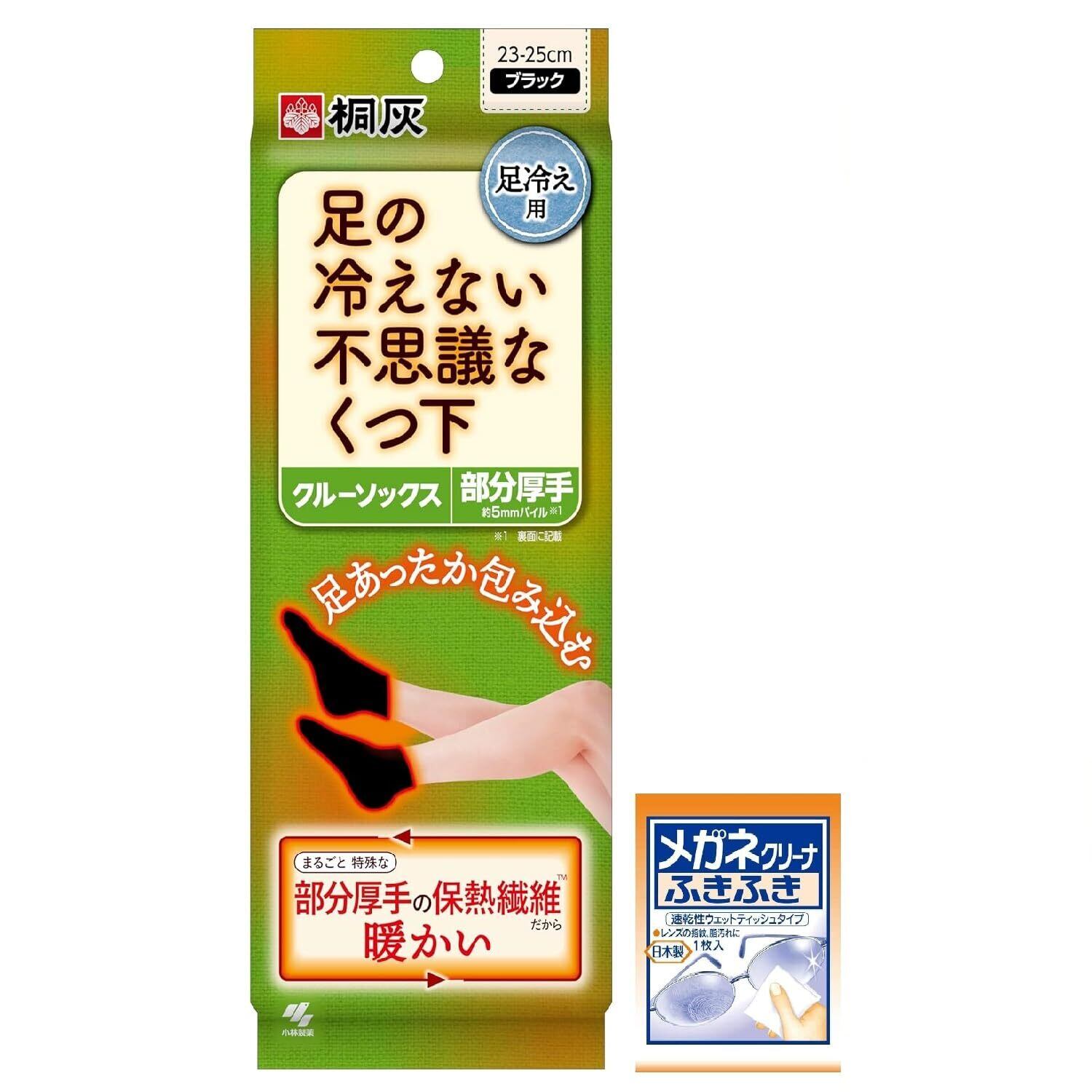 不思議なくつ下 桐灰 足の冷えない クルーソックス 足先からくるぶし 足冷え専用 靴下 23cm-25cm 黒色 (おまけ付き) 【限定】