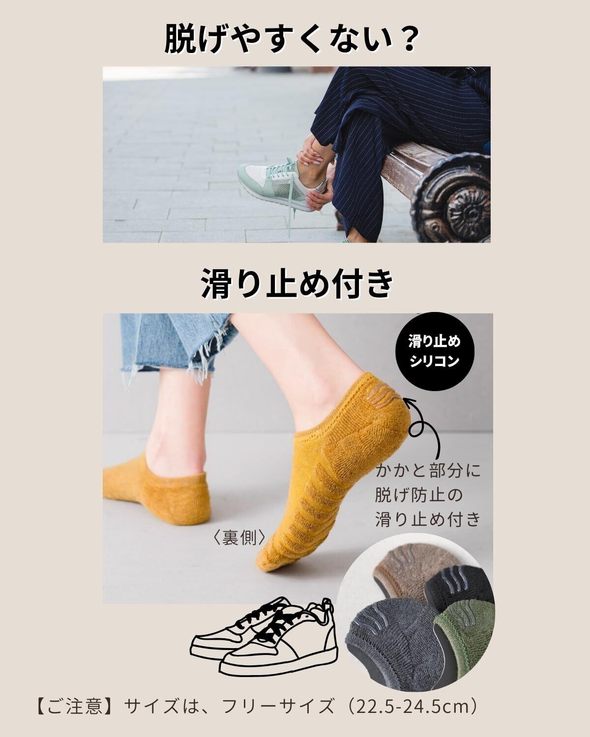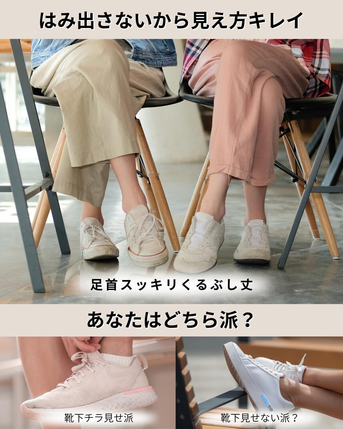 【スニーカー用】浅履きだからスニーカーから靴下がはみ出さず見えないから足元スッキリ※スニーカーによっては、靴下が見えるものもございます。靴の色と靴下の色を合わせることをお勧めします。