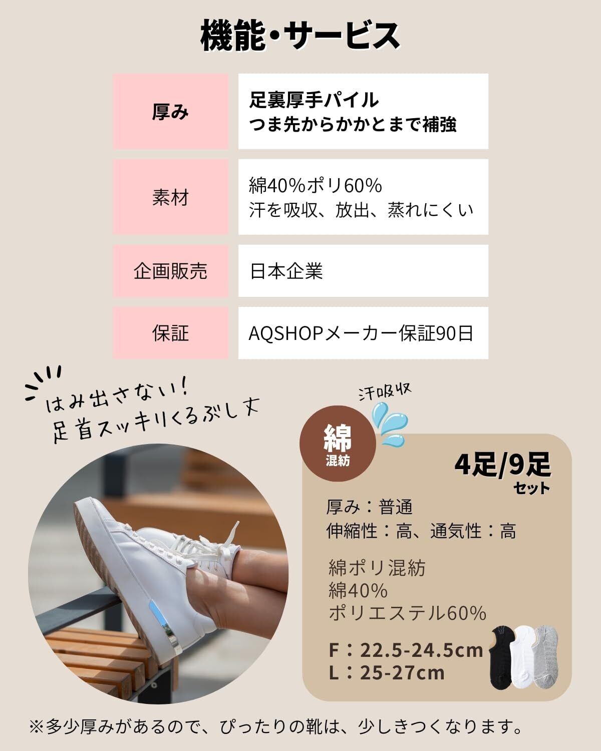 [AQshop] 【足裏厚手段パイル】 レディース 靴下 くるぶし スニーカーソックス 綿ポリ 脱げない 滑り止め付き セット