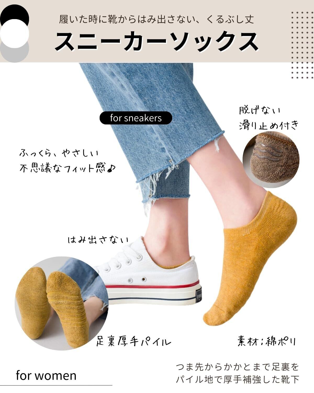 サイズ:22.5-24.5cm(フリーサイズ) ※サイズをご確認ください。レディース スニーカーソックス くるぶし靴下 足裏パイル 4足セット