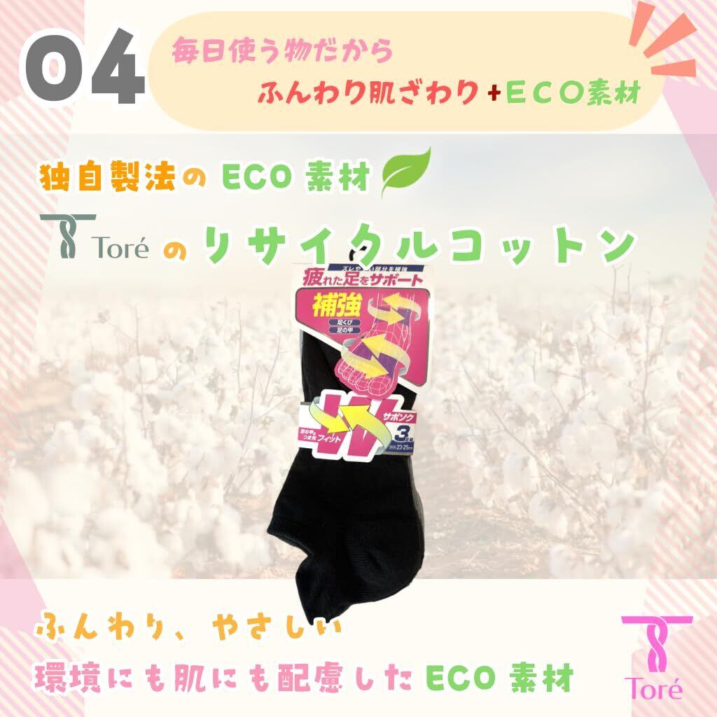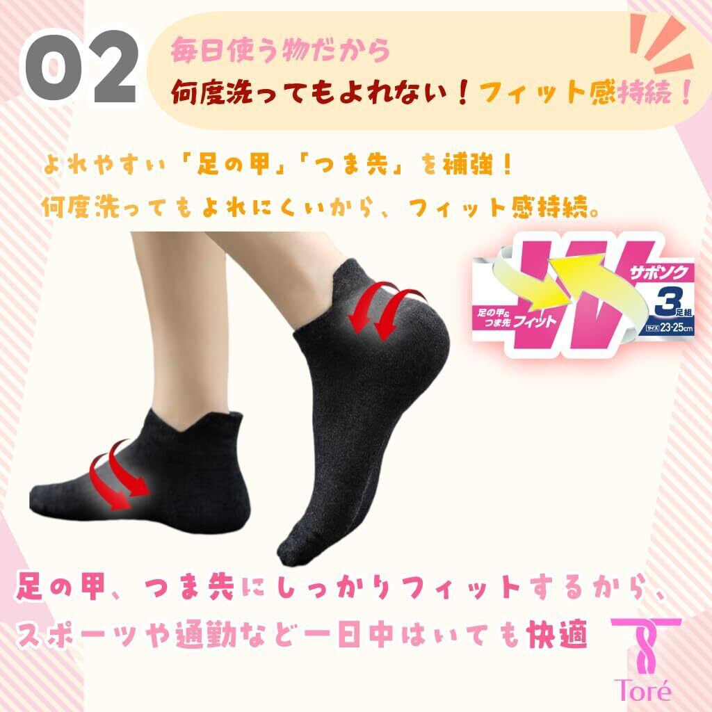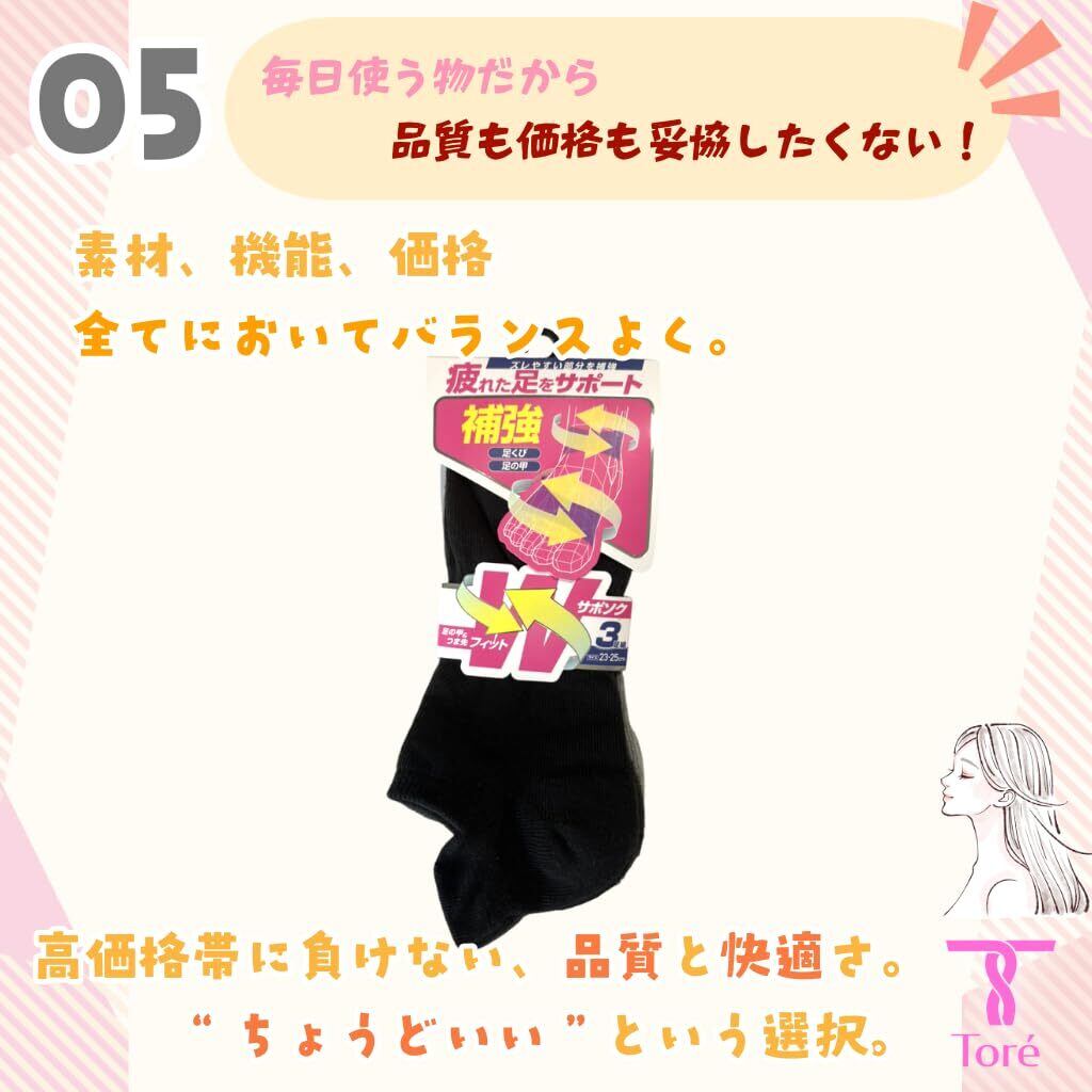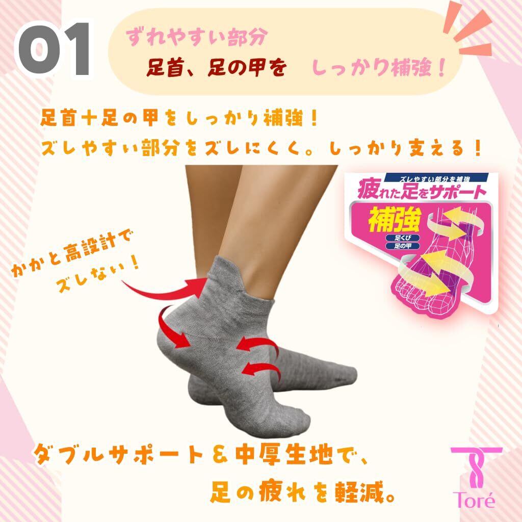 【毎日履くものだから ”ちょうどいい” Toréの『サポソク』レディースアンクルソックス】 ズレやすい「足首」「足の甲」を補強。 『Toréの『サポソク』レディースアンクルソックス』。 高価格帯に負けない、品質と快適さ。 ”ちょうどいい”という選択。