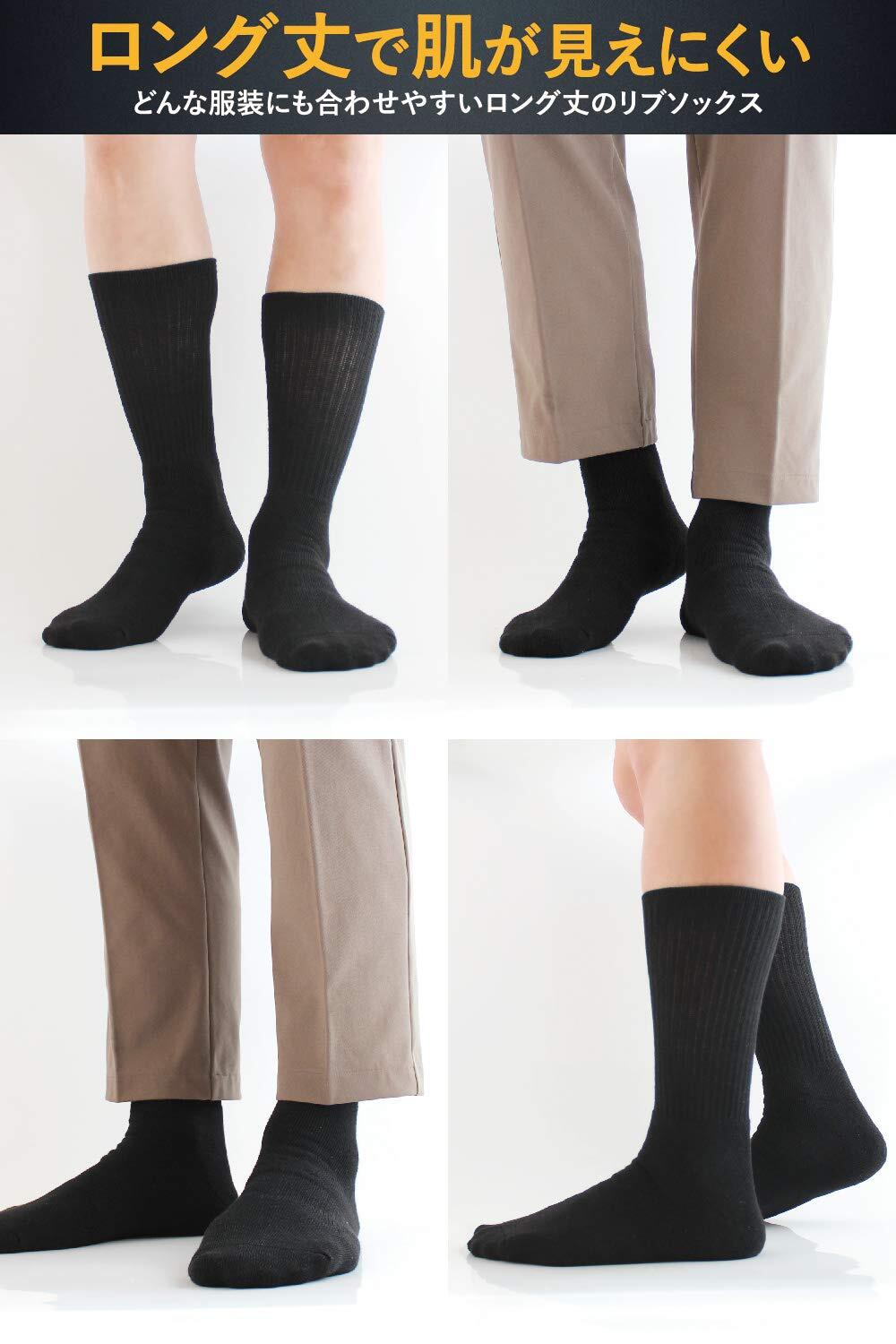 【スーツでも安心のロング丈】 かかとから履き口までの長さが約26〜28㎝ありますので、座った時でも裾から地肌が見えにくいです。第一印象が大事なビジネスシーンでも安心です。冬用のビジネスソックスとして人気です。