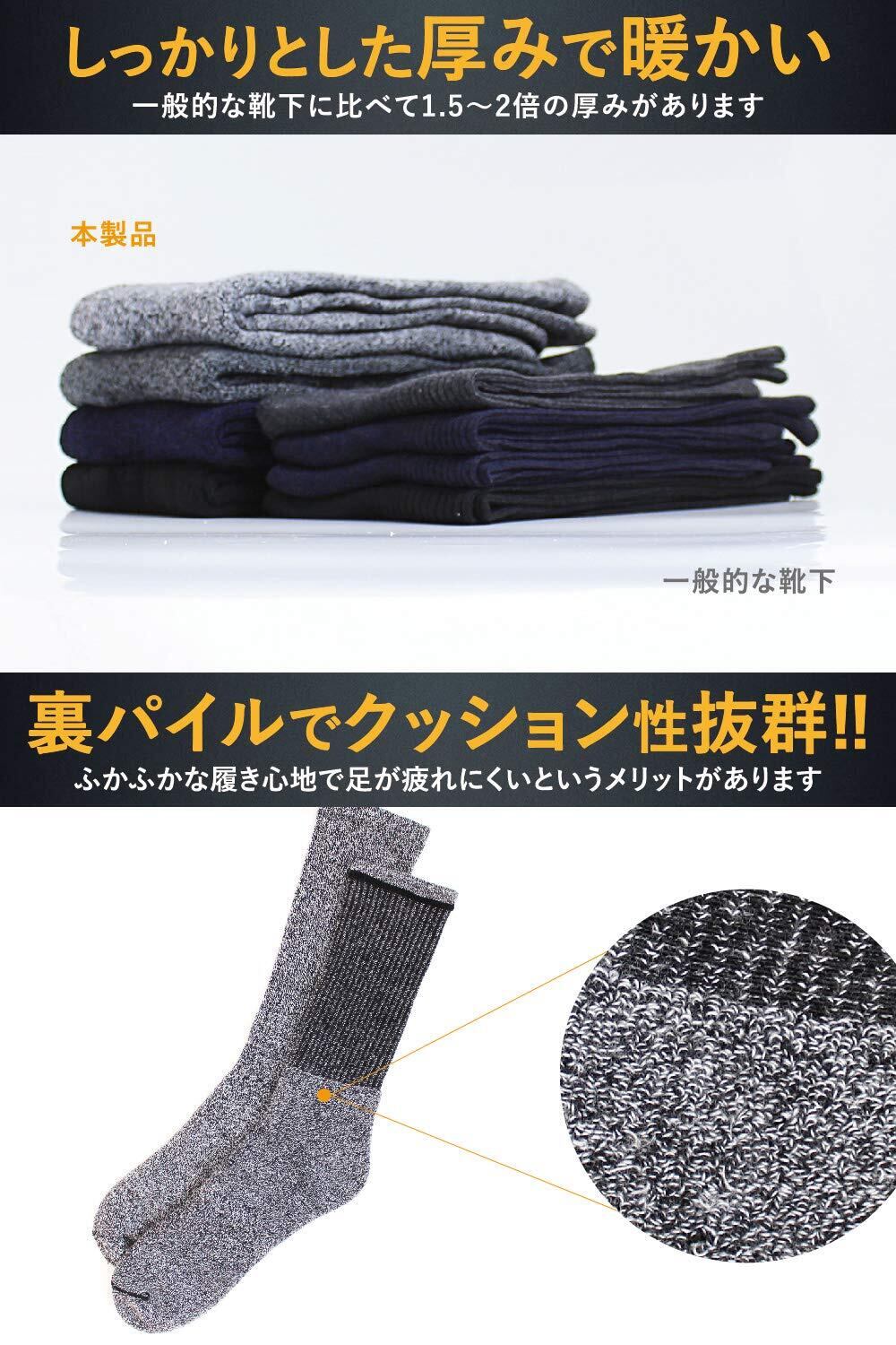 【暖かい(あったかい)厚手の生地】 生地の厚みが1.5〜2倍の差があります。肌側はクッション性と保温性に優れたパイル生地です。パイルソックスは、クッション性が良く、保温性に優れています。さらに破れにくく頑丈などメリットが多いです。