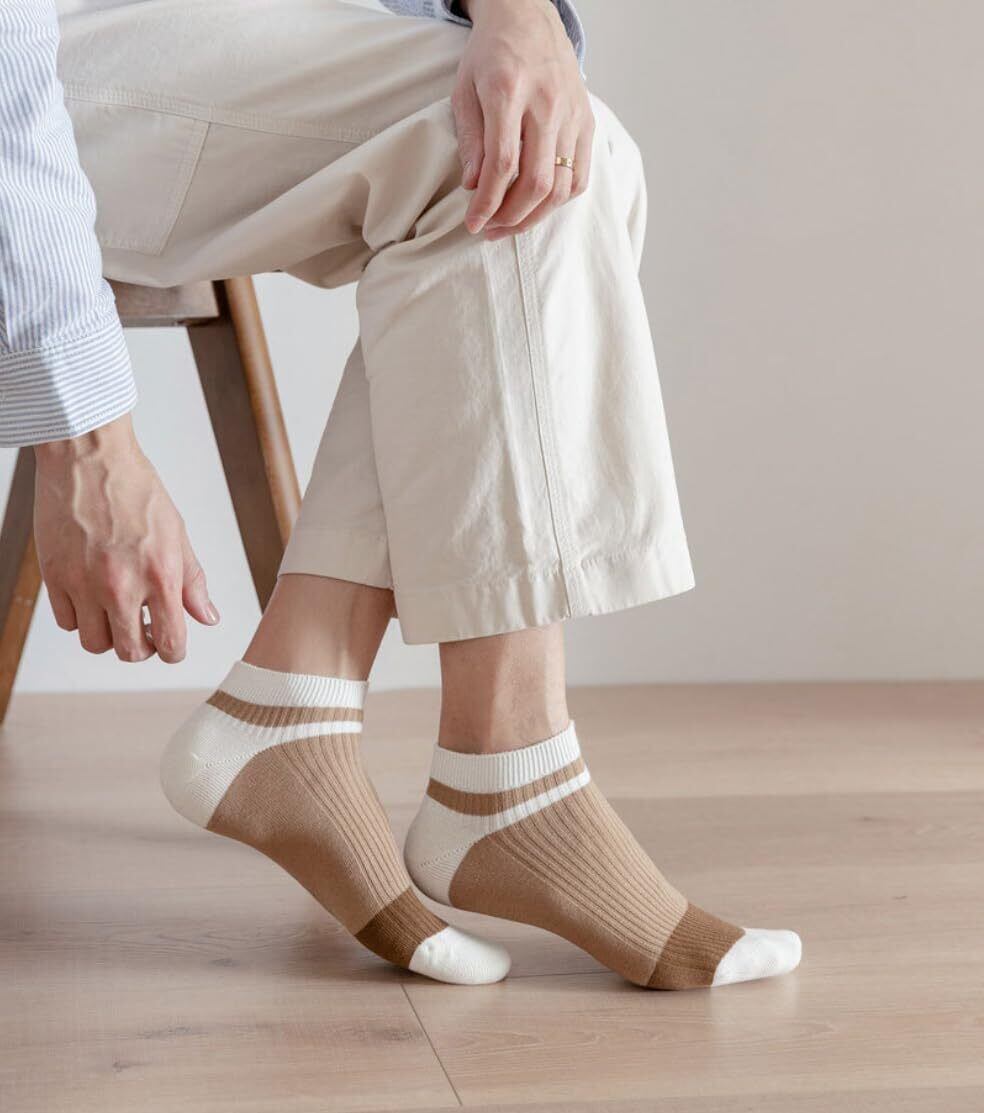 【高品質なコットンソックス】上質なコットン素材を使用し、柔らかく快適で通気性に優れており、長時間の使用でも不快感を感じません.また、抗菌防臭加工を施しており、足の臭いを効果的に抑制します。優れた吸収能力により、水分を素早く吸収し、足を乾燥させます.