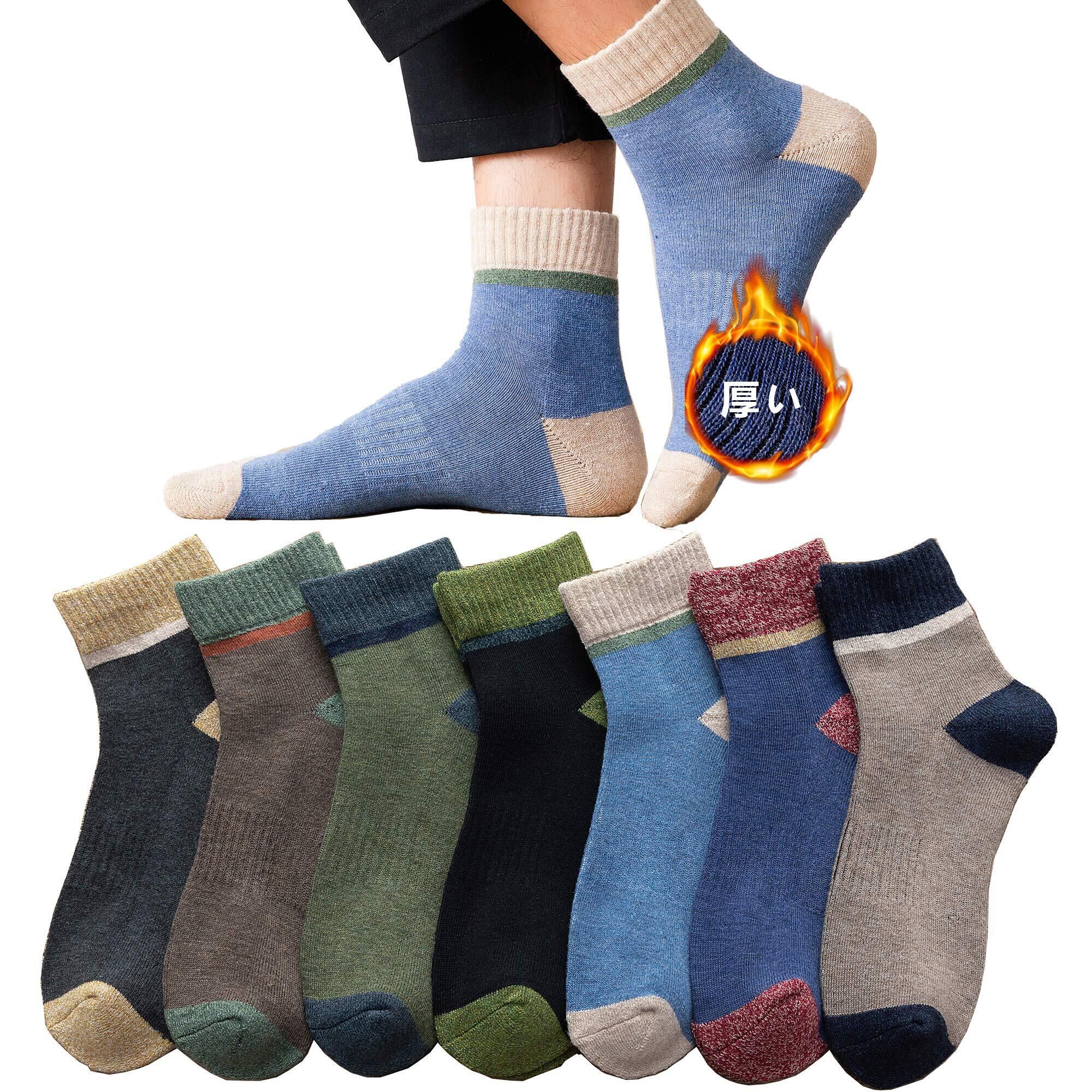 【極厚裏パイル】7足7色セット春冬秋に活躍。やわらかタッチで、肌触りが気持ちいい裏起毛素材なので、足元をやさしくつつみこみ、冷えからしっかり守ります。豊富な色とシンプルなデザインは流行を追う若者にも人気な春秋冬用おしゃれクルーソックス メンズ。