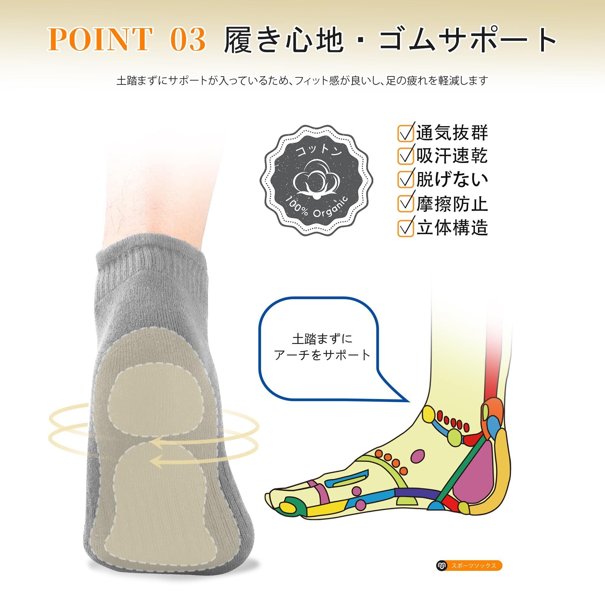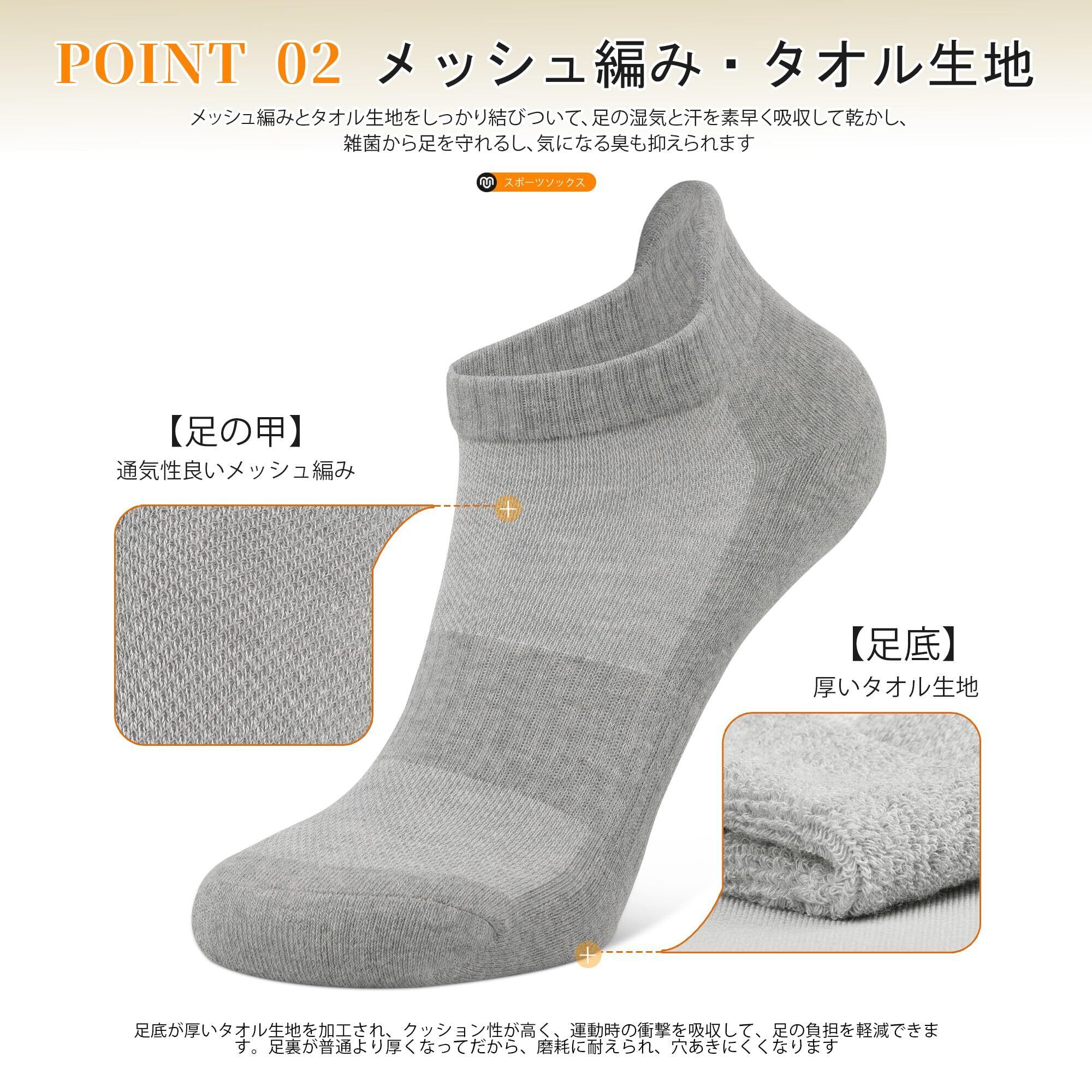 【抜群の柔らかさ】高質な天然綿とポリエステル素材で肌にやさしく、通気メッシュ編みで足元の清潔を保ち、ニオイをふせぎます。繊維に弾力性がありますので、洗っても柔らかさが持続し、吸水性のよい仕上がりで最高なフィート感を保証できます。