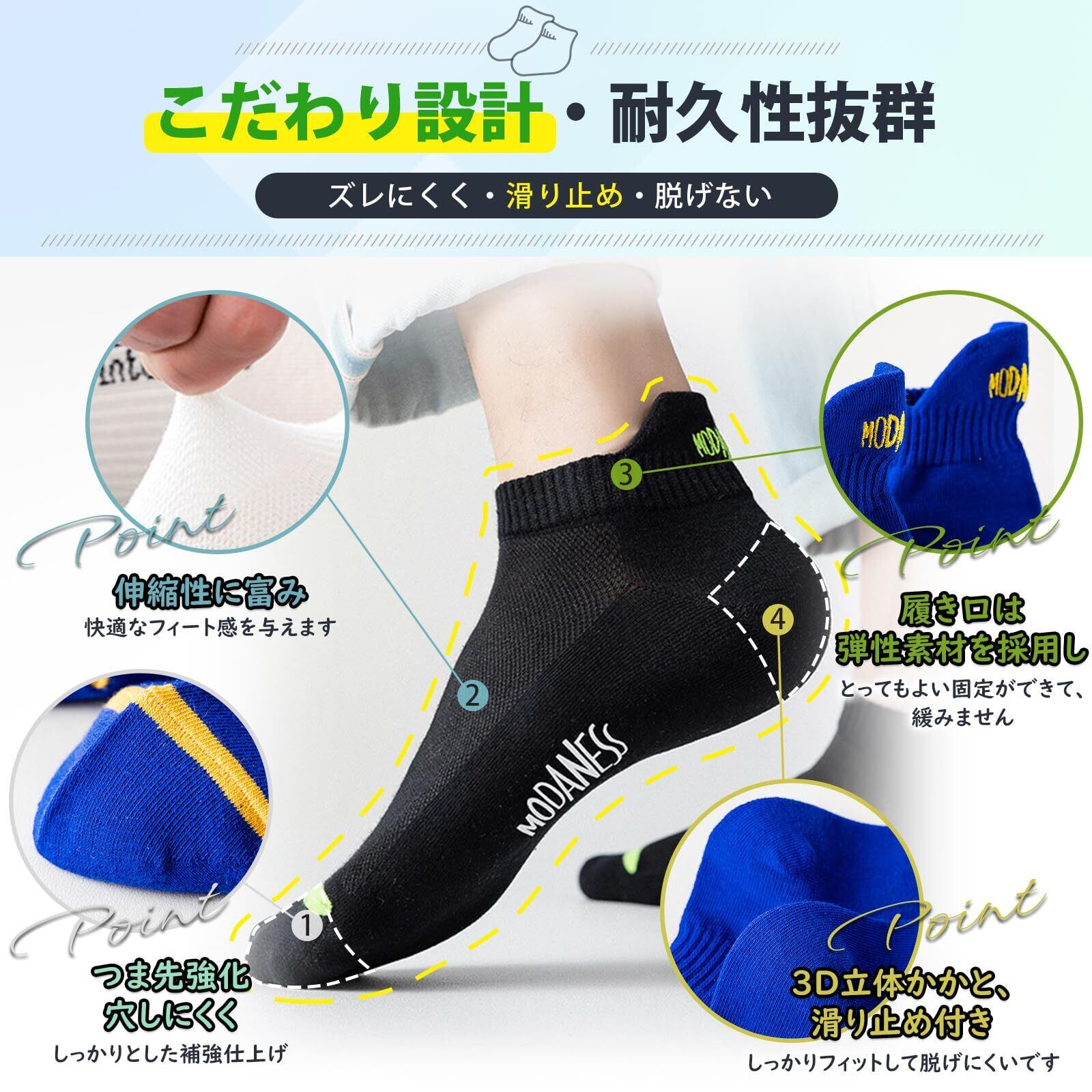【高品質コットン・快適な履き心地】サイズ:24.0-27.0 cm。80%コットン+20%スパンデックスの混紡素材。柔らかくもしっかりとした履き心地のくるぶし ソックスです!通気性に優れたメッシュ編み仕様で、長時間履いても蒸れず、汗やニオイが気になる方にオスス靴下 メンズです。さらりとした履き心地で一日中快適です。