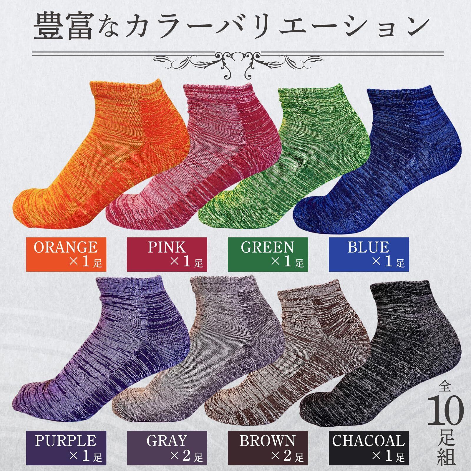 カラー:チャコール 1足 ネイビー 1足 オレンジ 1足 パープル 1足 グリーン 1足 ピンク 1足 グレー2足 ブラウン2足 お買い得10足セット