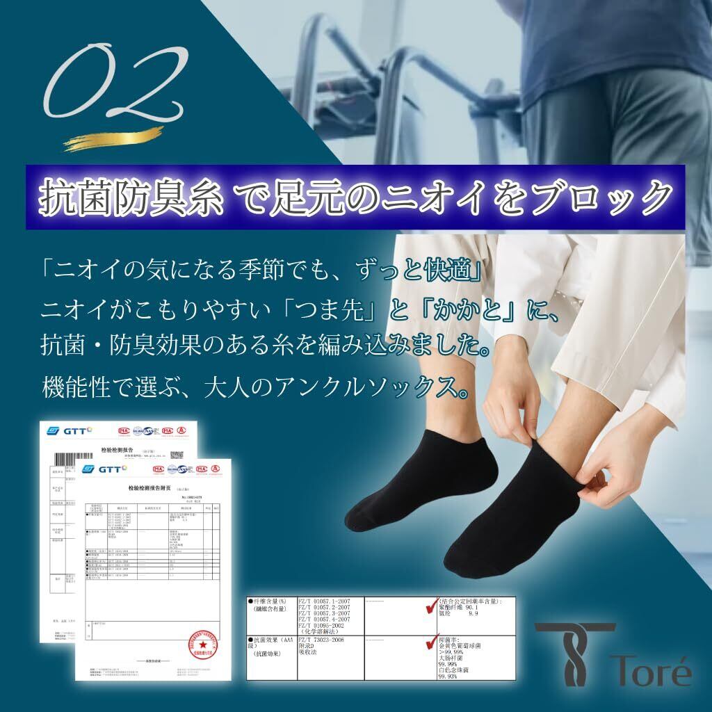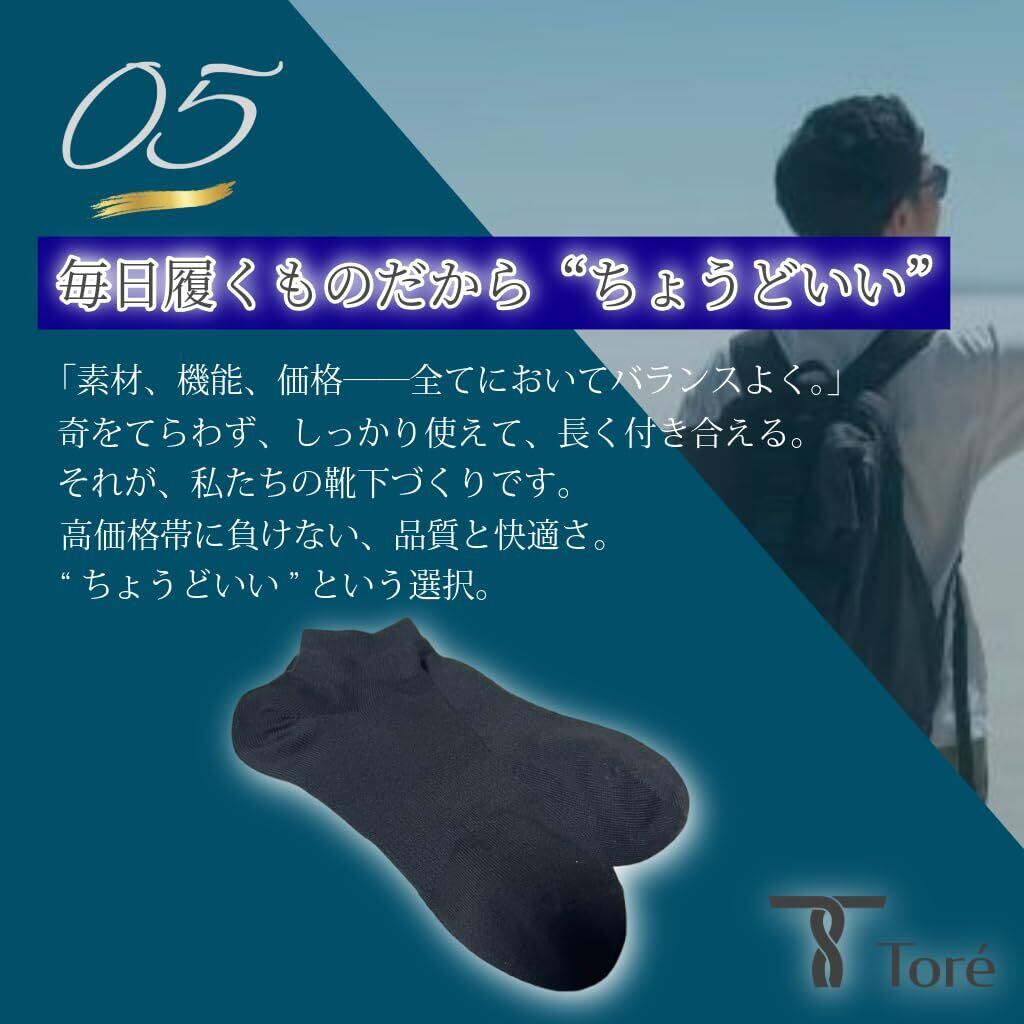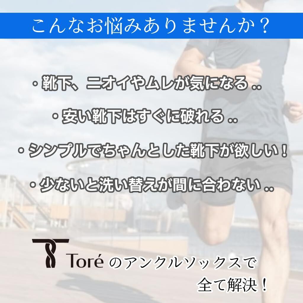 【毎日履くものだから ”ちょうどいい” Toréのアンクルソックス】 「抗菌防臭・つま先、かかと補強」はもちろん、 スポーツやランニング時の足への負担を軽減するために、中厚生地に仕上げた 『Toréのアンクルソックス』。 高価格帯に負けない、品質と快適さ。 ”ちょうどいい”という選択。