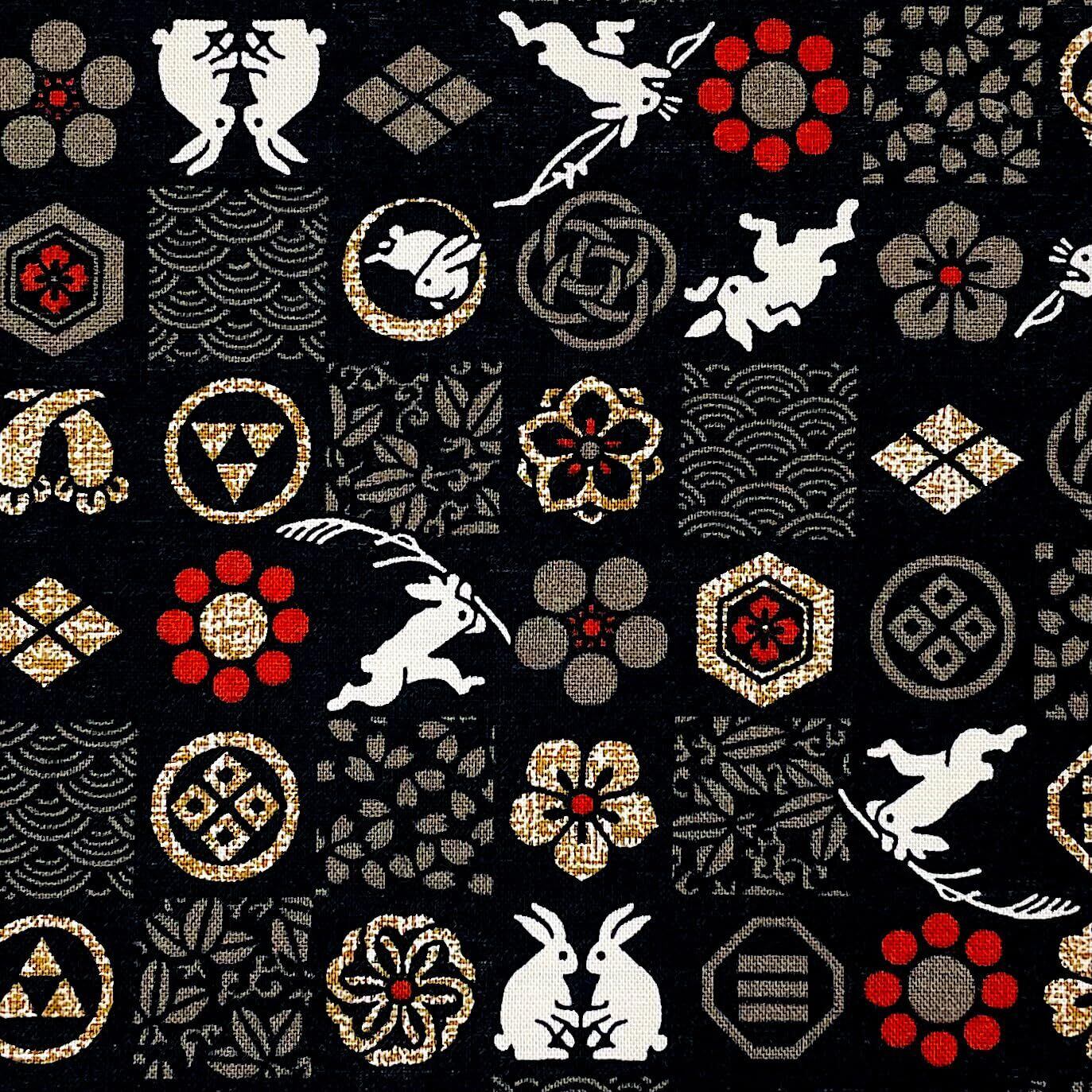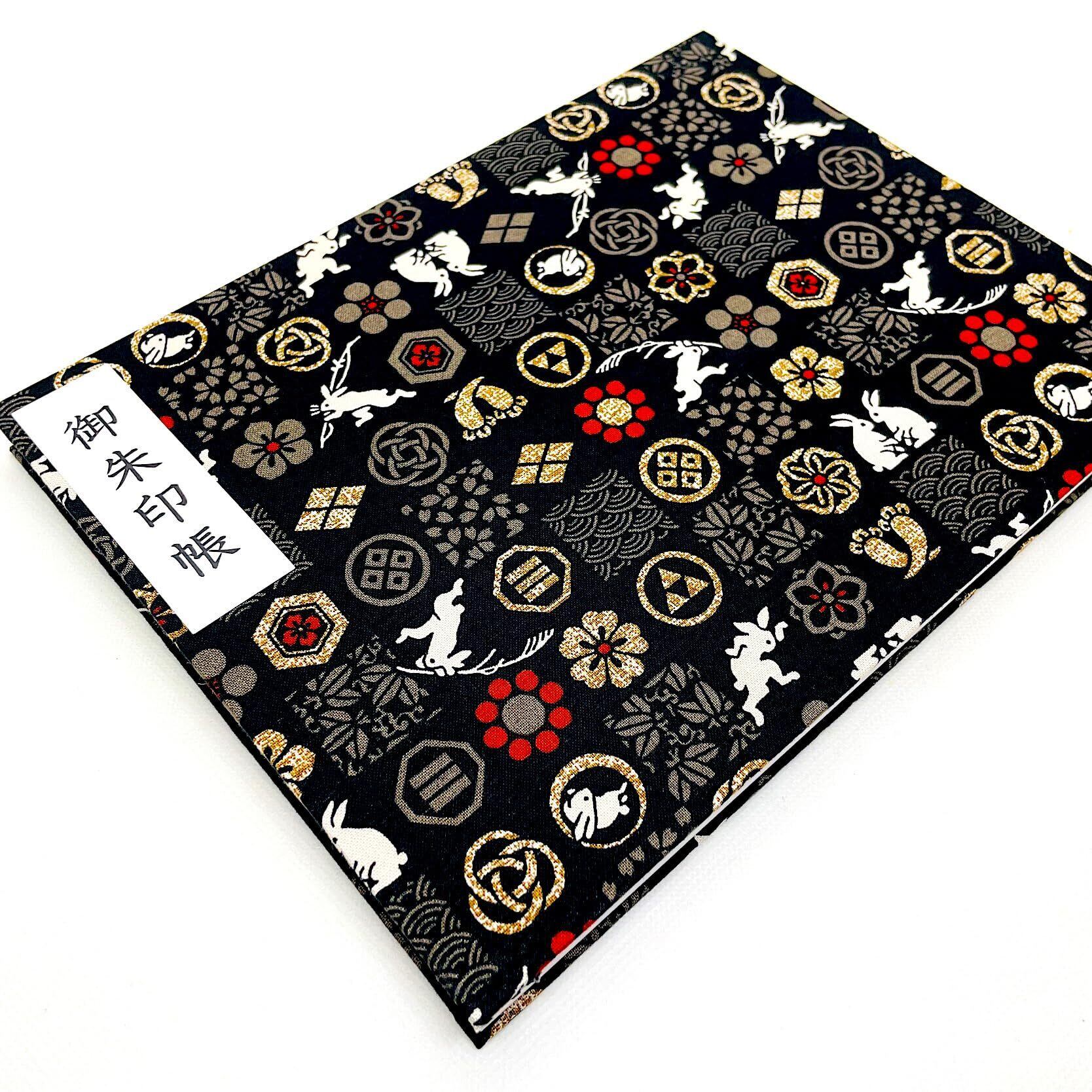 【市松うさぎ】見開き御朱印帳・蛇腹タイプ・12山24頁(片面使い)/24山48頁(両面使い) (黒)