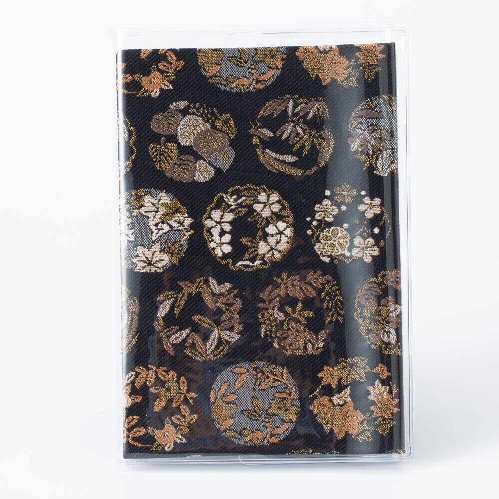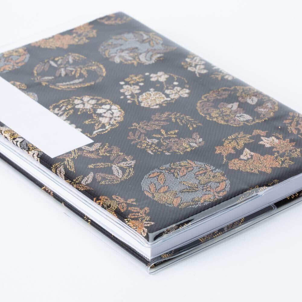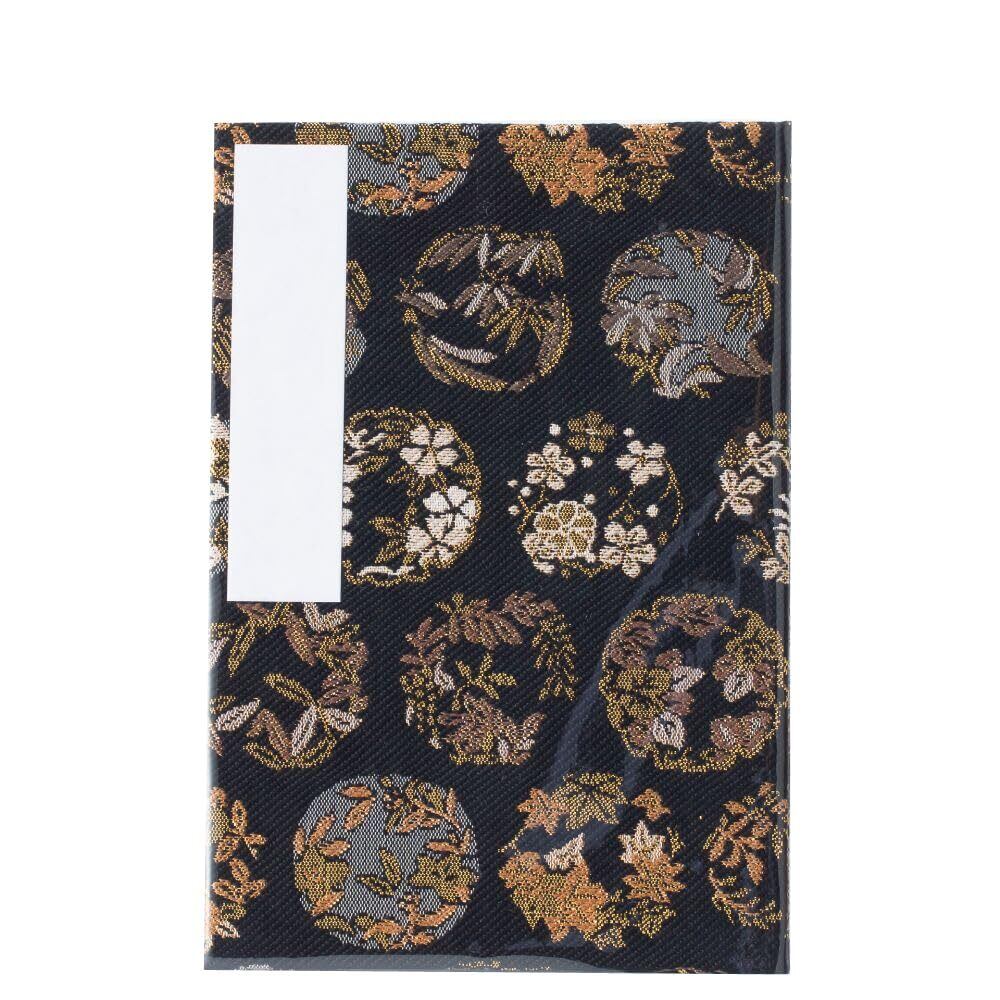 高知製本 ビニールカバー付き御朱印帳 魅惑の花天井(黒) 西陣金襴 蛇腹式 大判