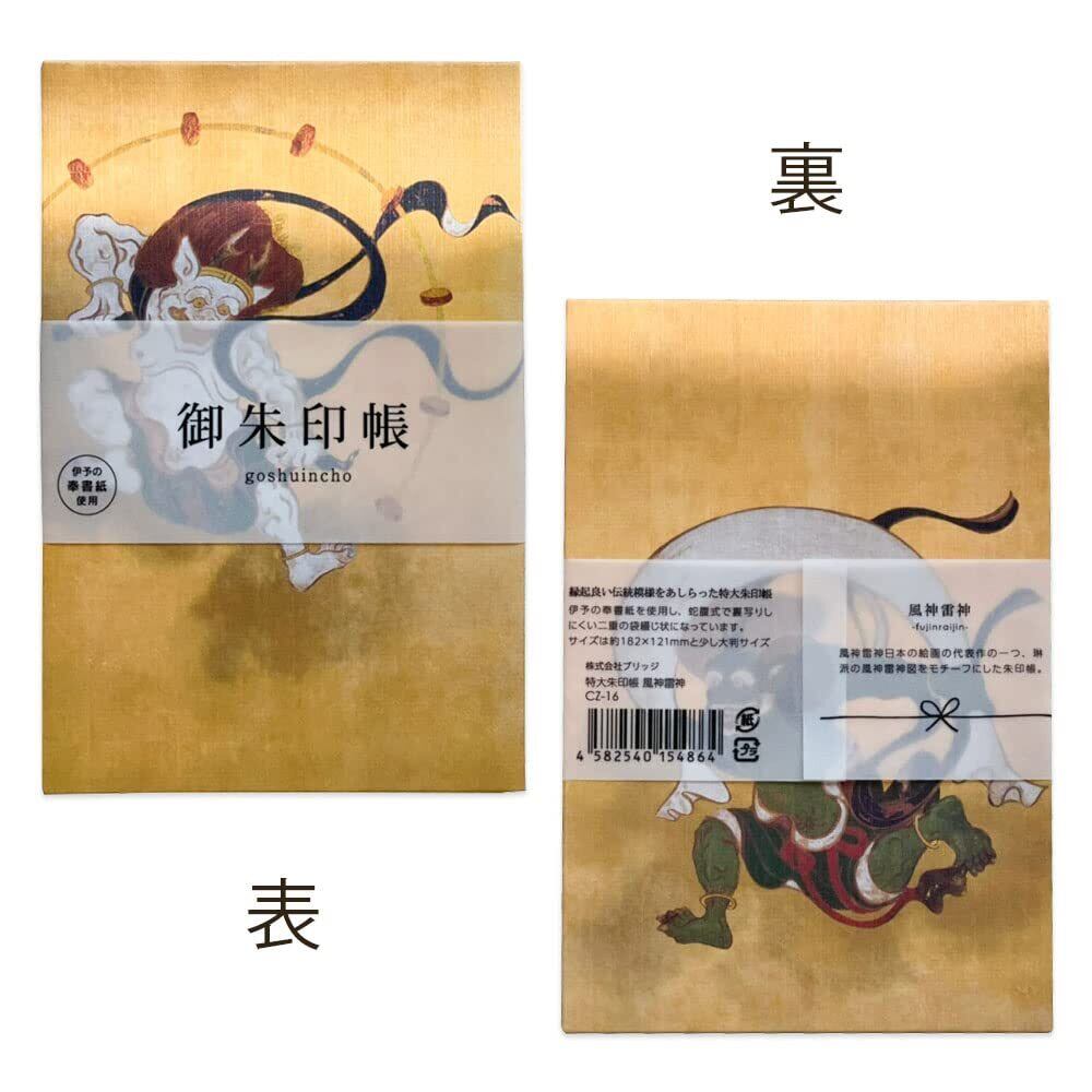 (Bridgehappy) 御朱印帳 御城印 集印帳 御朱印 大判 182×121mm 蛇腹 両面48頁 (風神雷神)