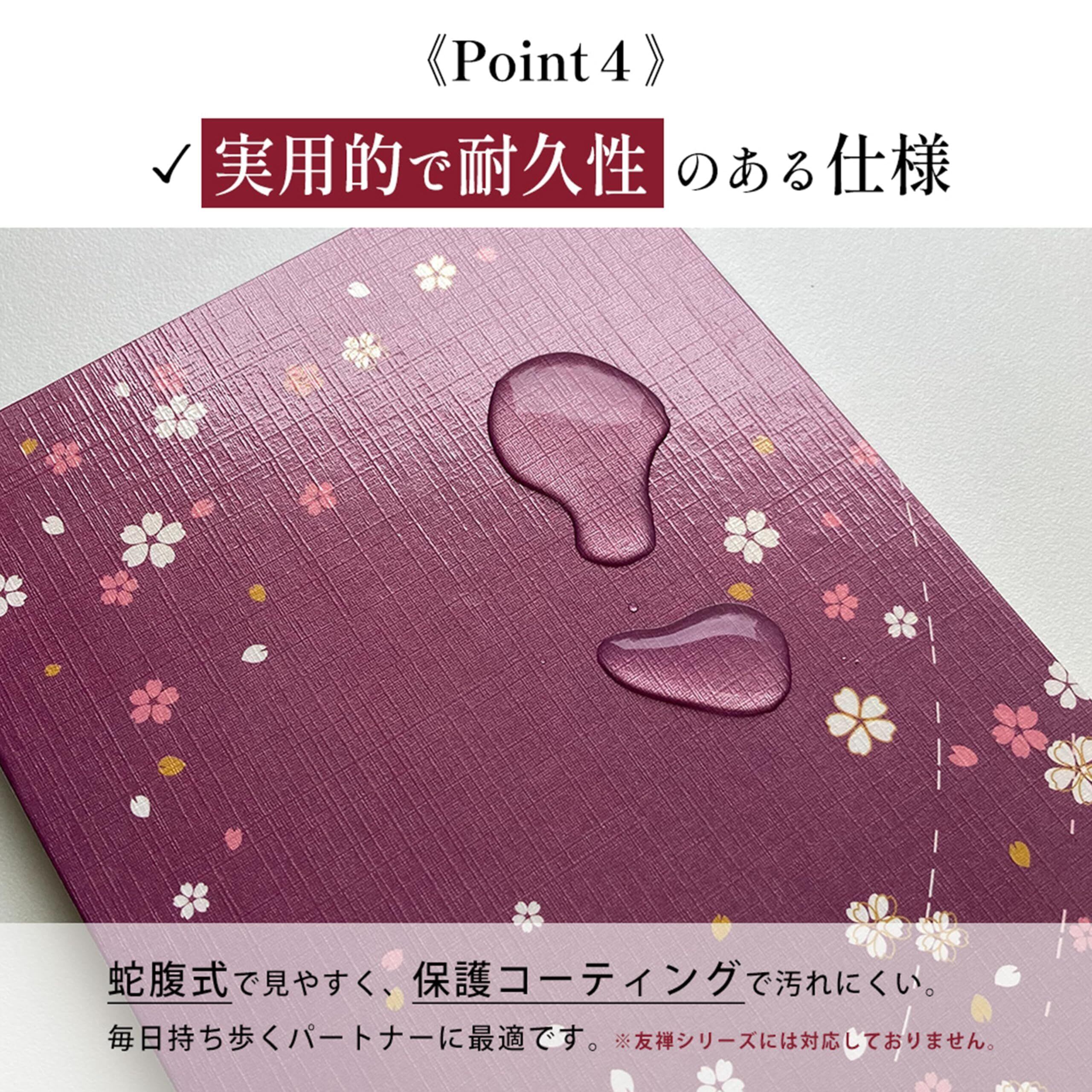 【こんなお悩みを解決します】 「書き置きの御朱印が大きくて、今までの帳面にはみ出てしまう…」 → 【大判サイズ】で、さまざまなサイズの御朱印にゆとりを持って対応。貼るのもすっきりです。 「墨が裏ににじんで、他のページが汚れてしまわないか心配…」 → 【墨のにじみを軽減した二重構造】が、墨のにじみを軽減。大切な御朱印を美しい状態で保管しやすい仕様です。 「御朱印帳を持ち歩くので、汚れや摩擦が気になる…」 → 【高級感のある光沢コーティング】が、表紙を保護。日常の持ち運びにも強い耐久性を考慮した仕様です。 「パッと開いて、集めた御朱印を一度に眺めたい!」 → 【蛇腹式設計】で、ページをめくる手間なく、すべての思い出を一望できます。