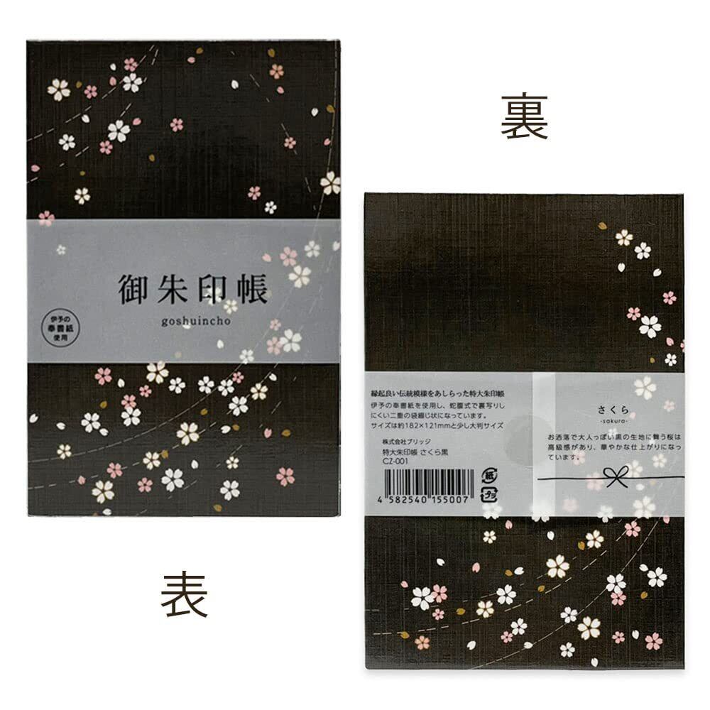 御朱印帳 御城印 集印帳 御朱印 大判 蛇腹 納経帳 (さくら黒)