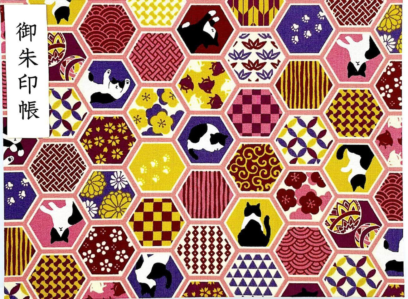 【ハチワレ猫ちゃん】見開き御朱印帳・蛇腹タイプ・12山24頁(片面使い)/24山48頁(両面使い) (ピンク)