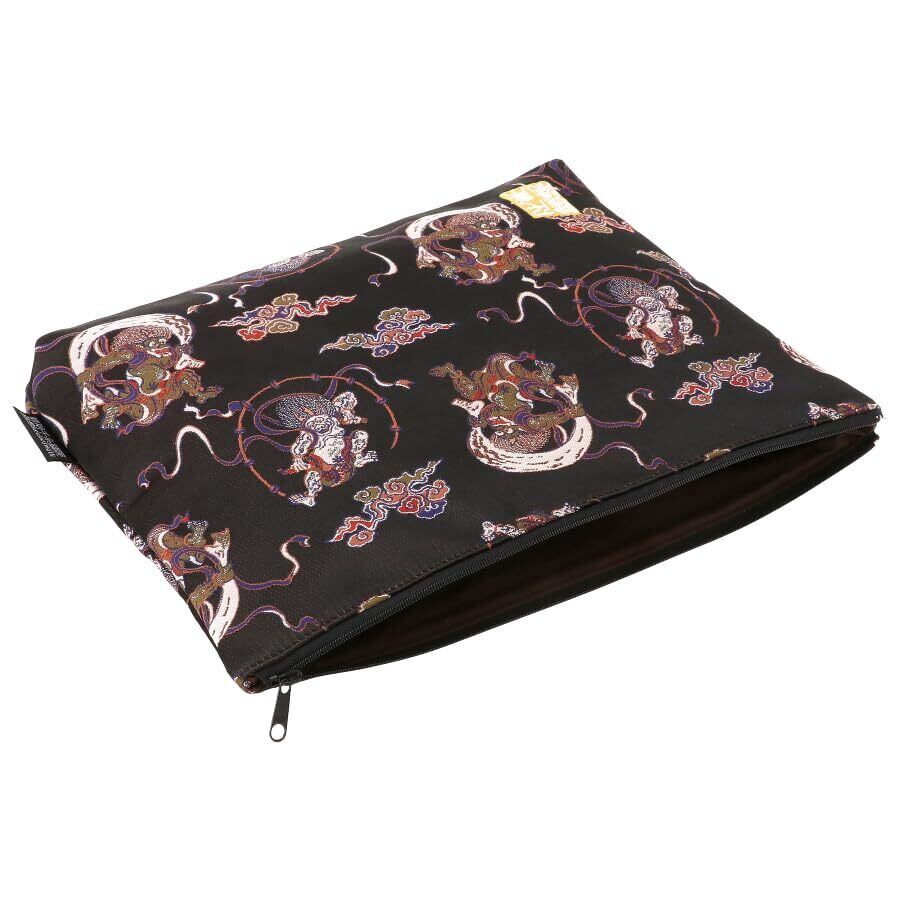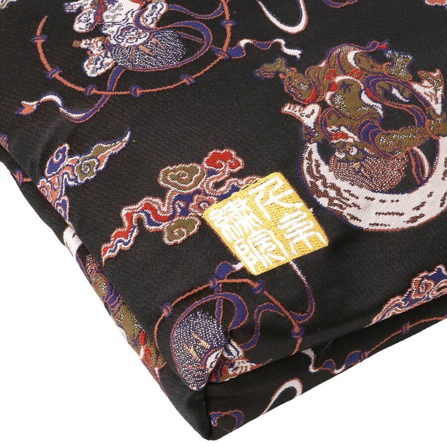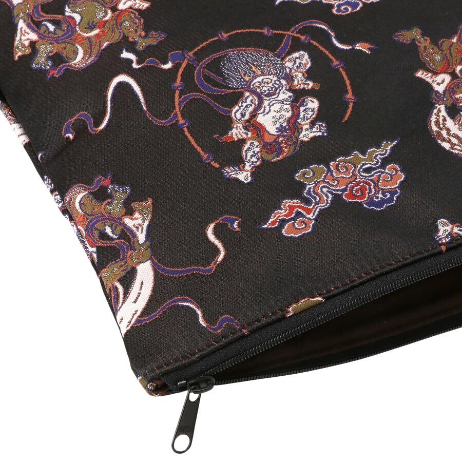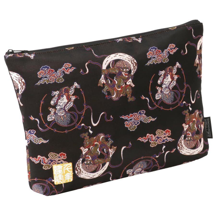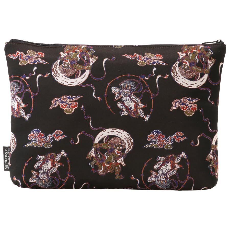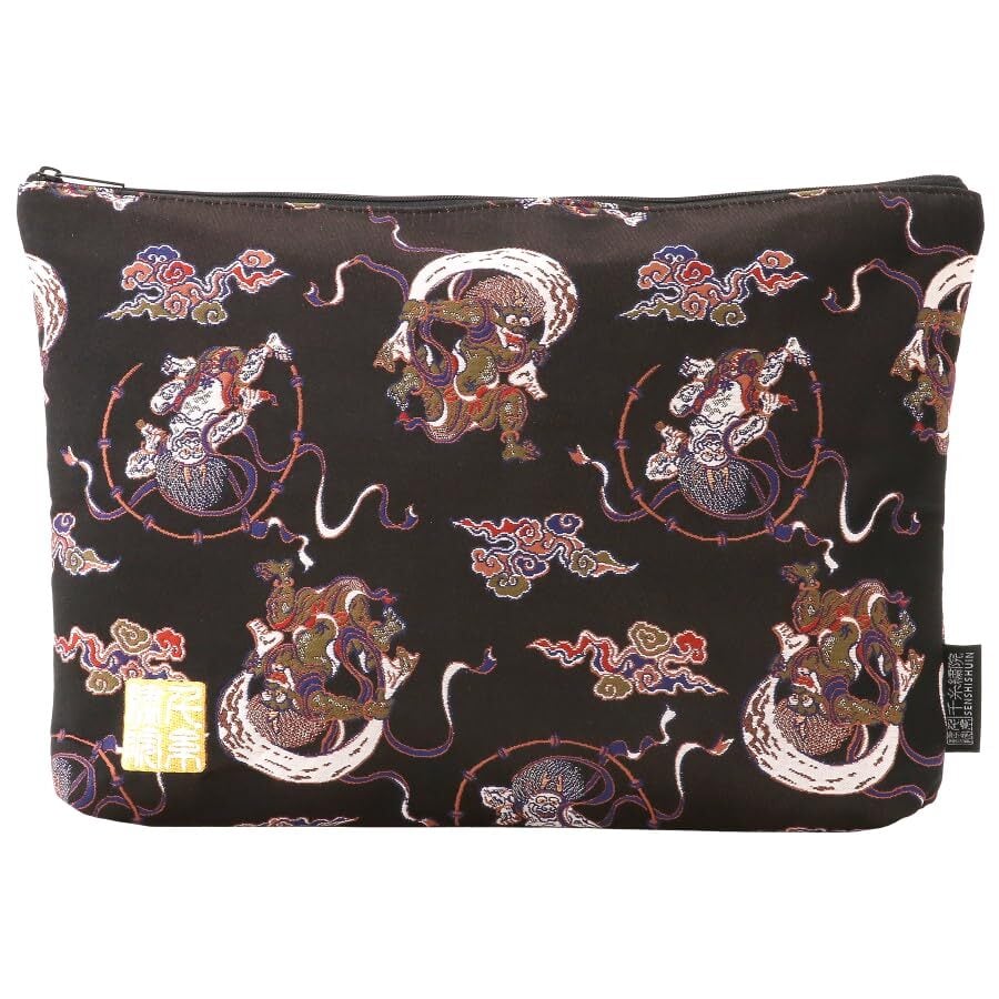千糸繍院 西陣織 金襴 ポーチ/御朱印帳ケース(裏地付き) 漆黒風神雷神 LLサイズ