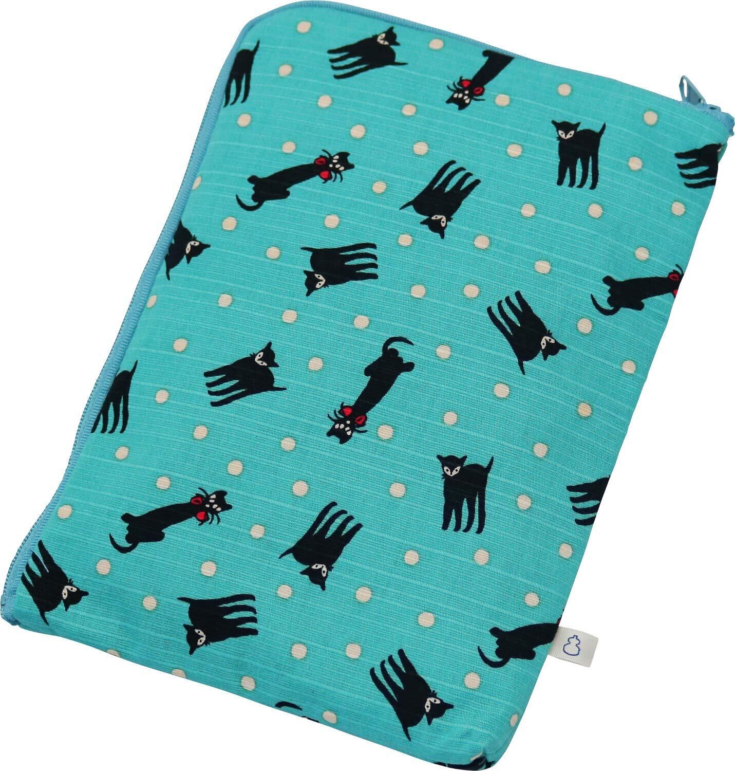 京佑 日本製 綿 ポーチ コスメ メイク 約21×15cm 猫 L字ファスナー 化粧 旅行 ご朱印帳入れ 竹久夢二 黒ねこ 和柄