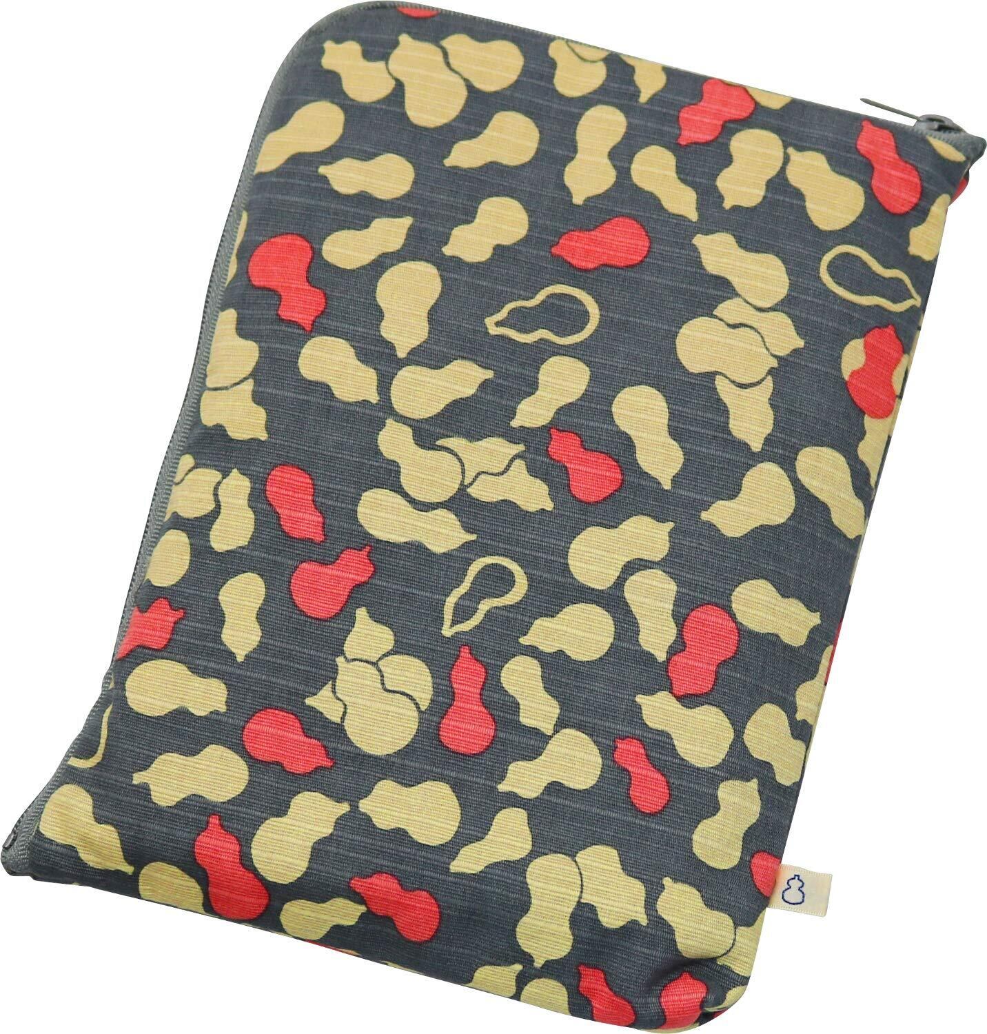 京佑 日本製 綿 ポーチ コスメ メイク 約21×15cm 縁起 L字ファスナー 化粧 旅行 ご朱印帳入れ MASHU ひょうたん グレー 和柄