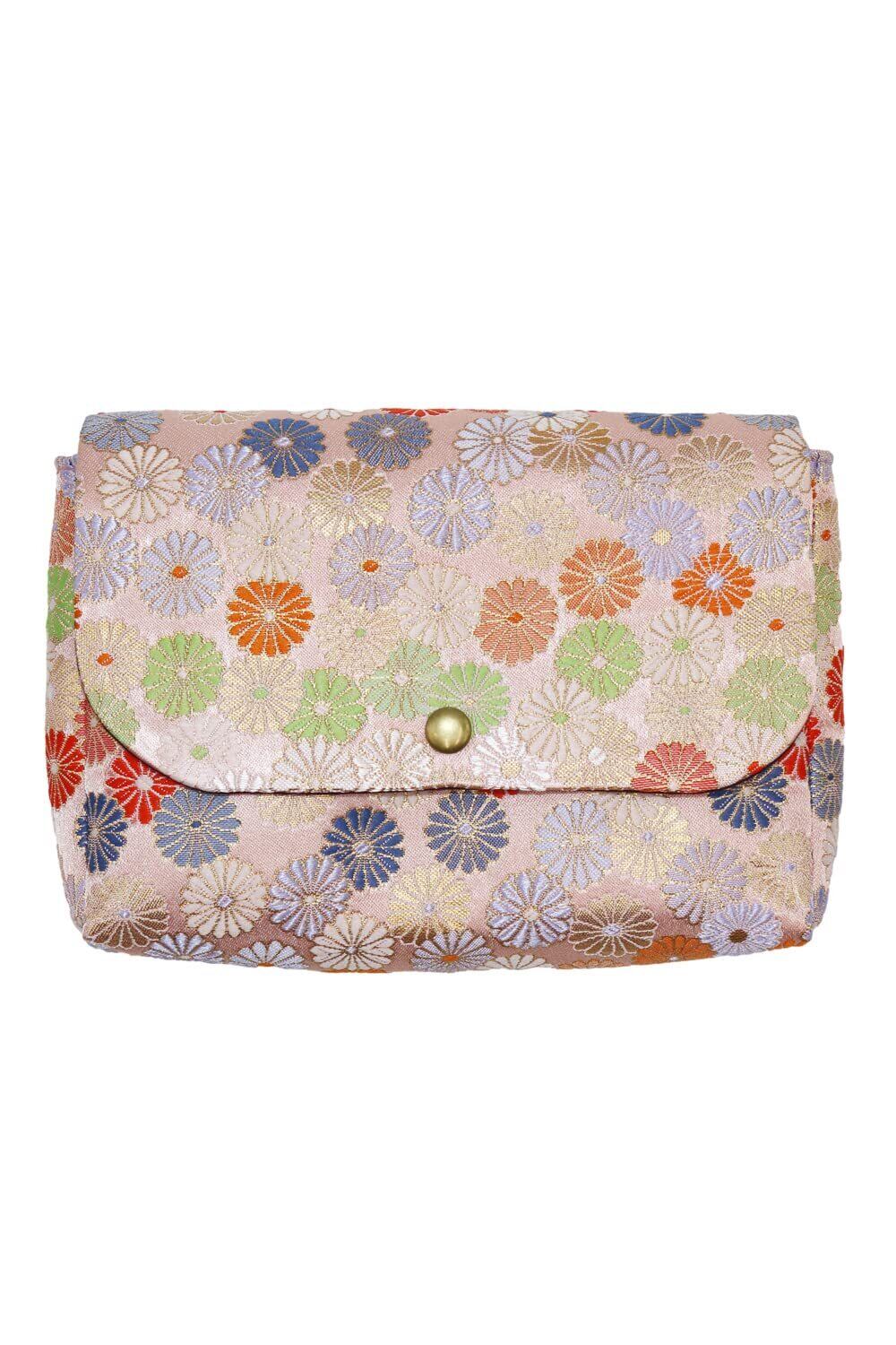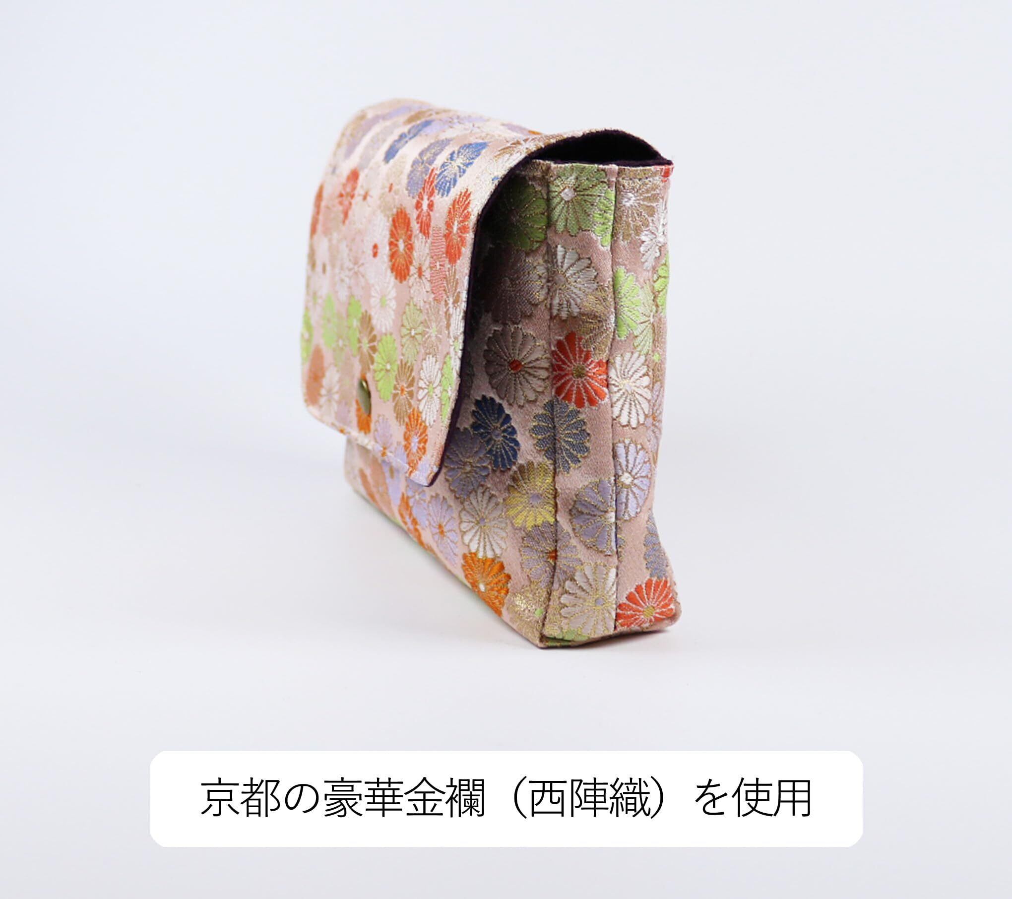 金襴 西陣織 御朱印帳入れ 金襴ポーチ 御朱印帳2冊収納可 御朱印帳袋 御朱印帳ケース 御朱印帳ポーチ 22×14×4 日本製 (菊尽くし 薄ピンク)