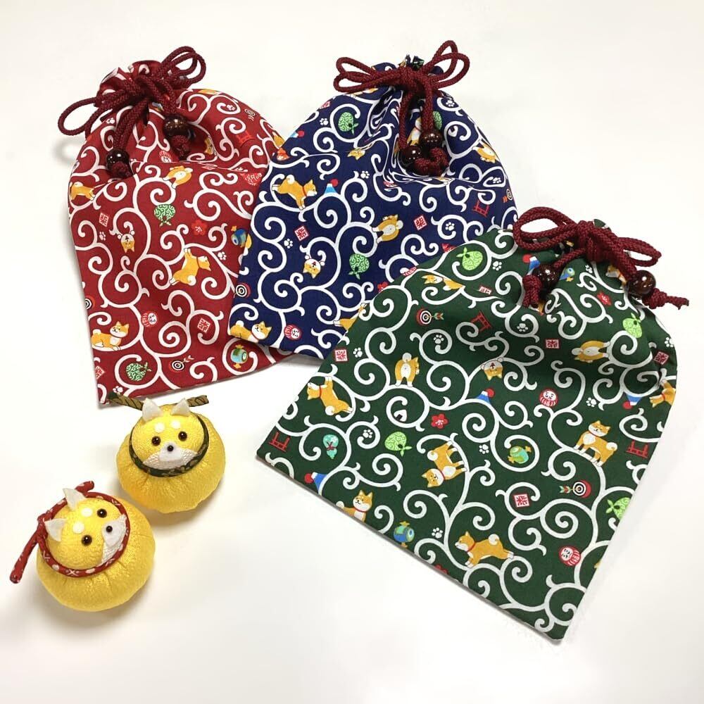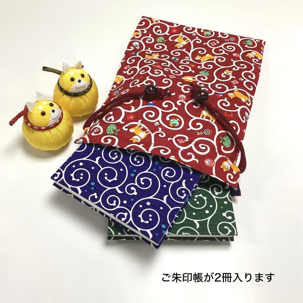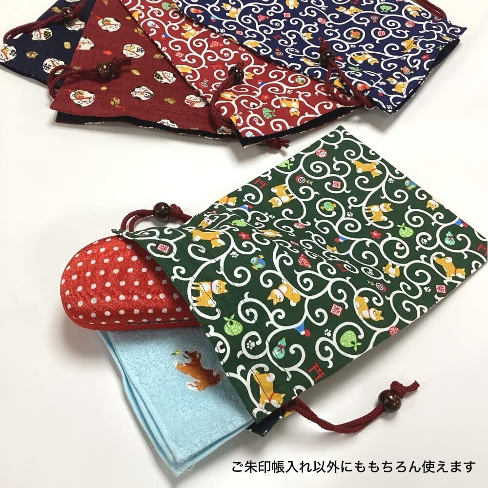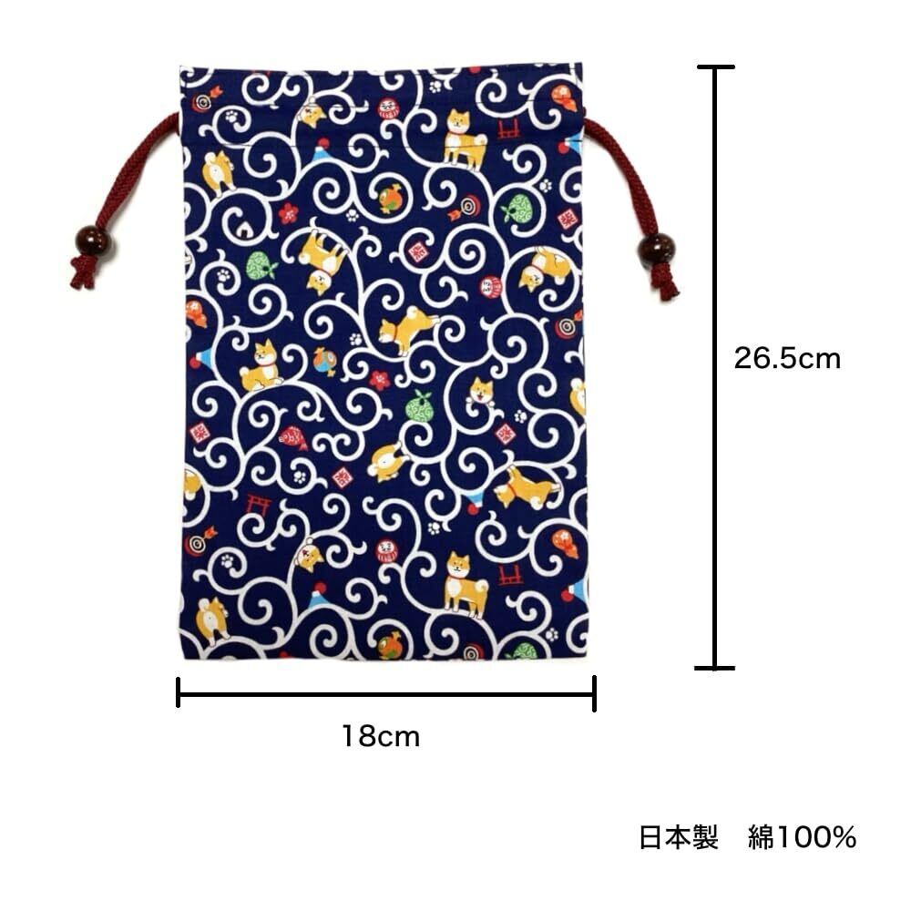 京佑 日本製 御朱印帳 ケース 巾着 袋 約26.5×18cm 縁起屋柴犬 紺