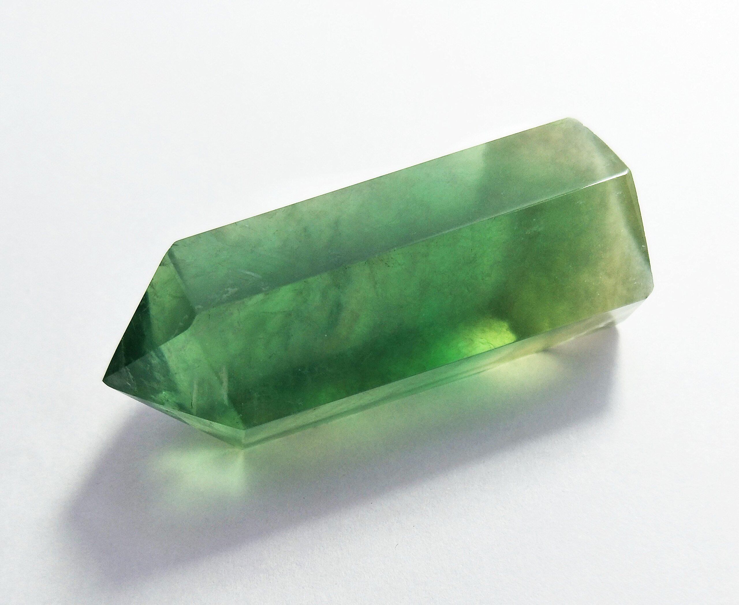 ヒーラーの天然石パワーストーンフローライト(蛍石)ヒーリングワンド 先のとがった多面体仕上げ仕様のクリスタル棒で 癒し瞑想とチャクラ強化エネルギーヒーリングなどに最適 Green Fluorite Healing Stone Wand Pointed & Faceted
