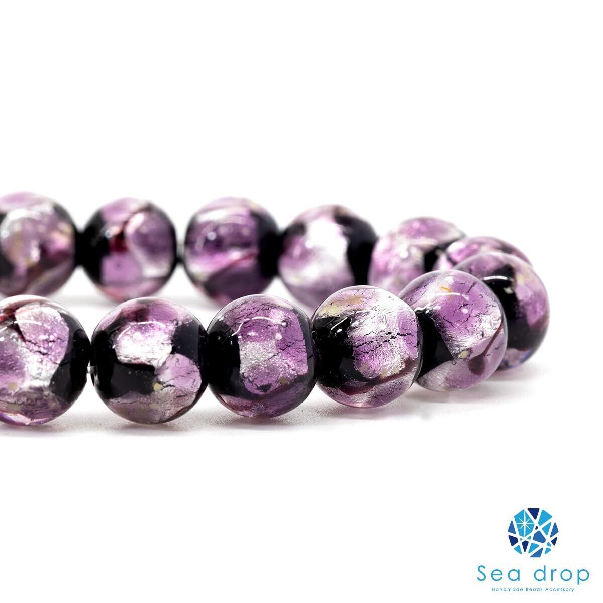 Sea drop 光る ホタルガラス パープル8mm 半連 25玉 約20cmビーズ 蓄光 紫色 とんぼ玉 [308htt-08]