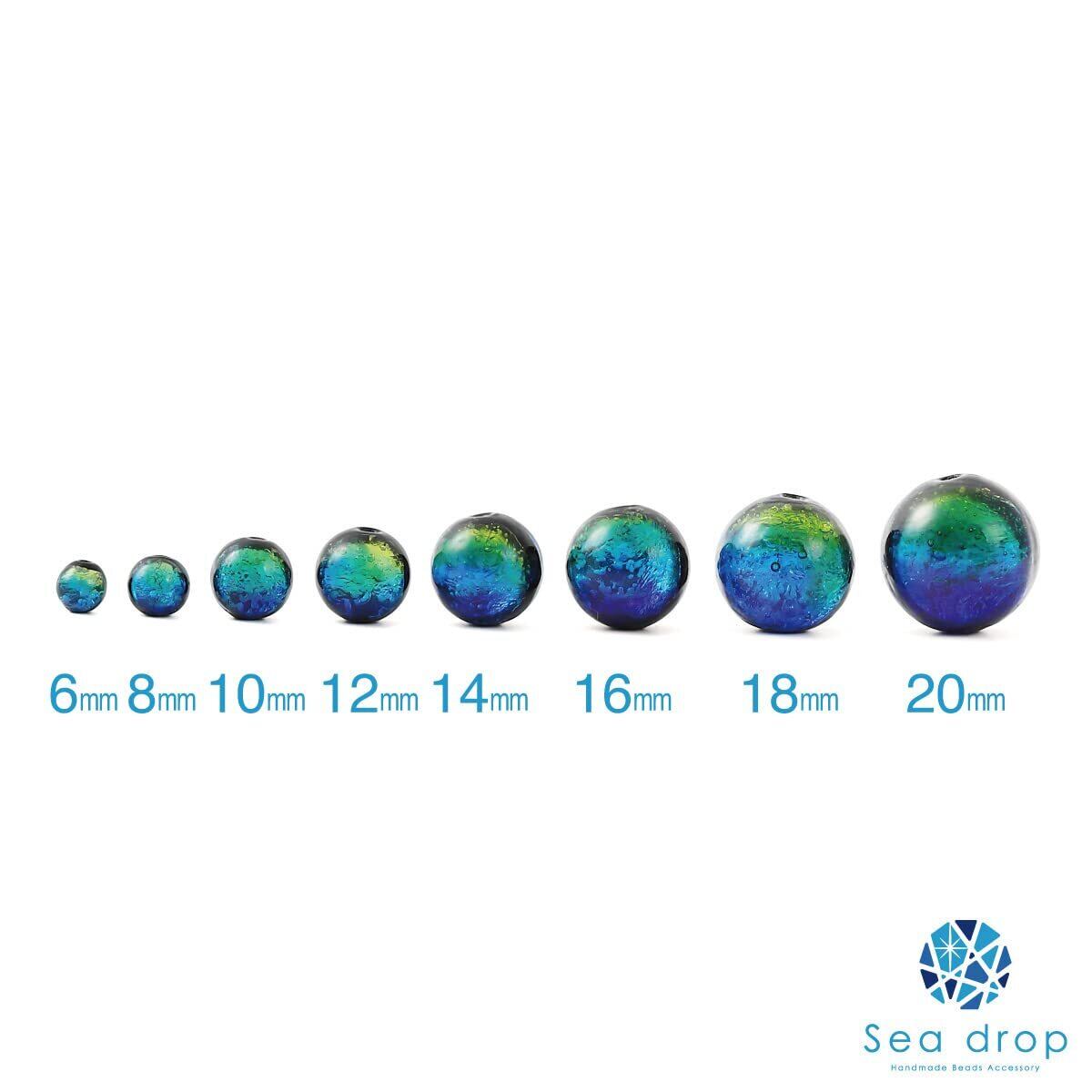 【商品仕様】素材:ホタルガラス 蓄光タイプ (ケラママリン) サイズ: 20mm玉※ハンドメイドのため玉の直径に1mm前後差がある場合がございます。 穴の内寸:約2.0mm~2.3mm