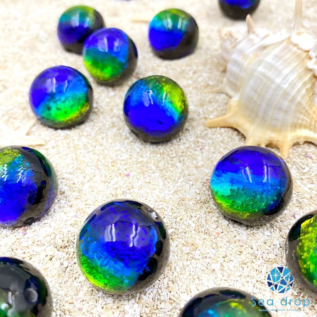 Sea drop 光る ホタルガラス ケラママリン 粒売り 20mm玉 ビーズ 蓄光 とんぼ玉 2玉 [127btt-20-2]