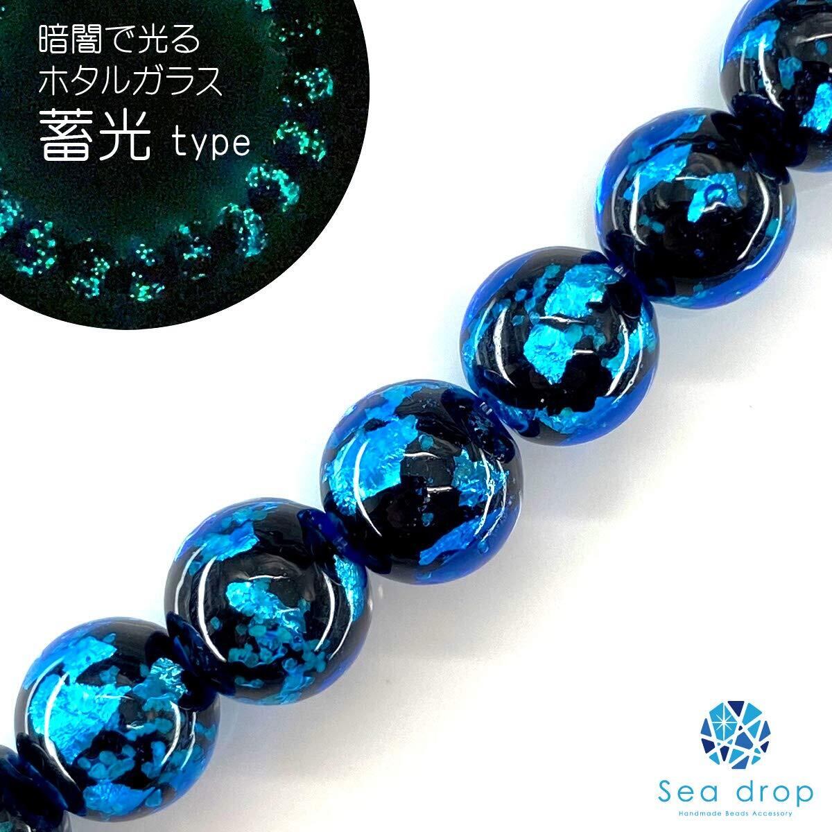 Sea drop 光る ホタルガラス ブルー8mm 半連 25玉 約20cmビーズ 蓄光 青色 とんぼ玉 [031htt-08-3]