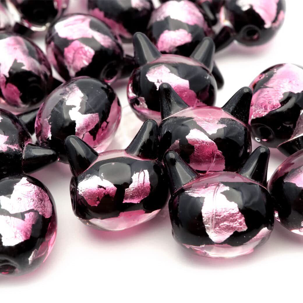 [GOLD STONE] ホタルガラス ねこ ビーズ ピンク パーツ アクセサリー 制作 粒売り手芸 招き猫 沖縄 お土産 にゃんこ とんぼ玉 2粒