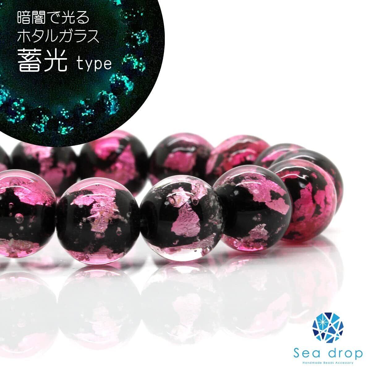 Sea drop 光る ホタルガラス ピンク 12mm 半連 18玉 約20cmビーズ 蓄光 とんぼ玉 [032htt-12-7]