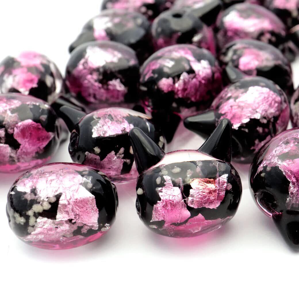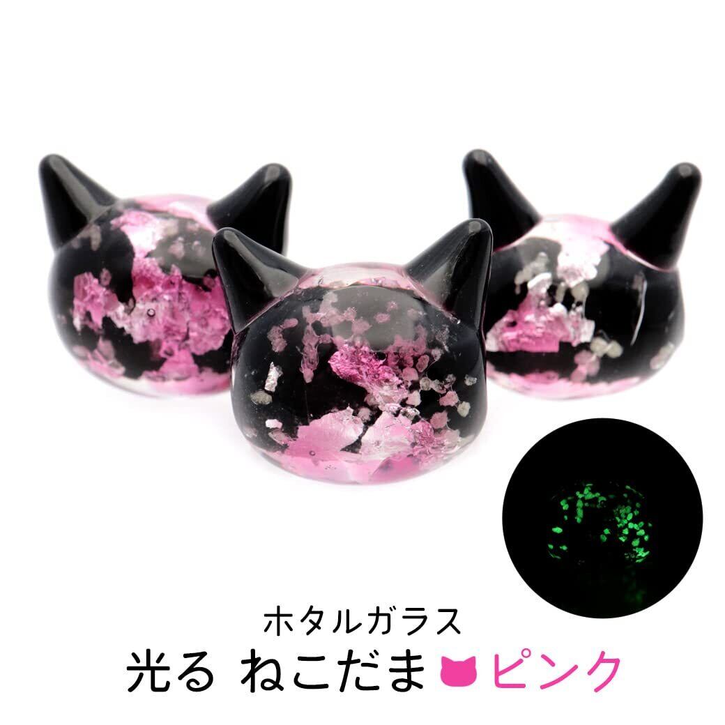 [GOLD STONE] ホタルガラス ねこ ビーズ ピンク 光る 蓄光 パーツ アクセサリー 制作 粒売り手芸 招き猫 沖縄 お土産 にゃんこ とんぼ玉 1粒
