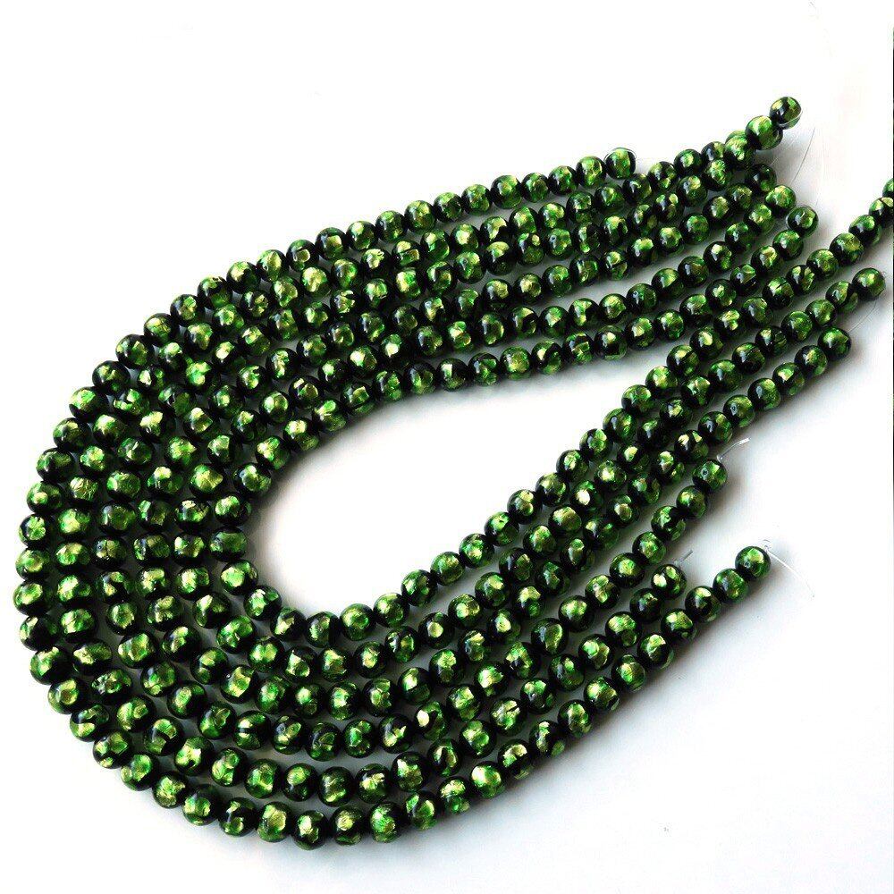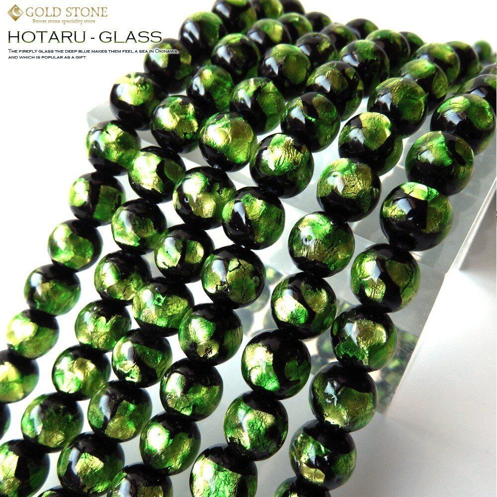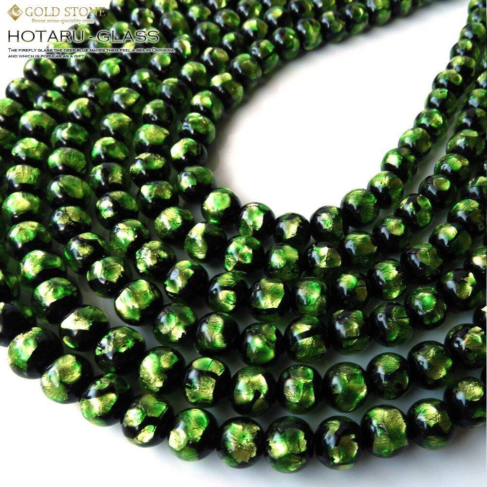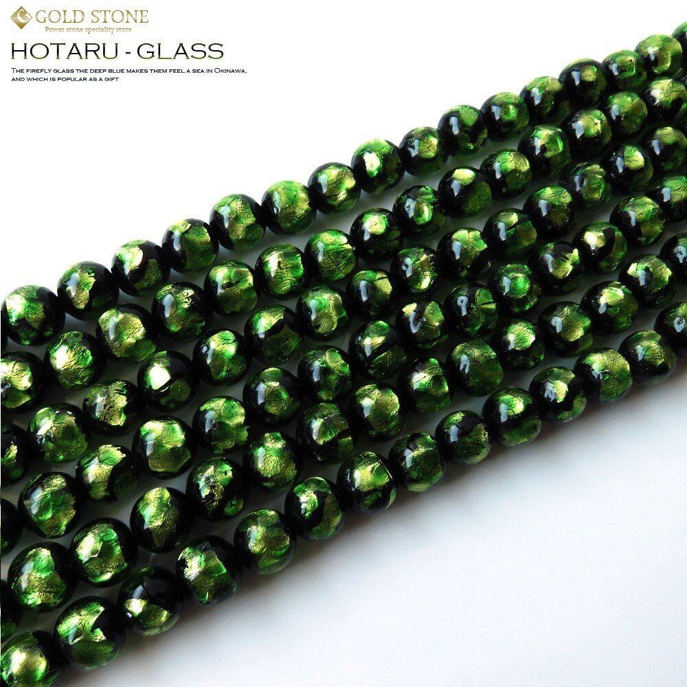 [GOLD STONE] ホタルガラス 一連 ビーズ 長さ約37cm ライトグリーン とんぼ玉 沖縄 8mm